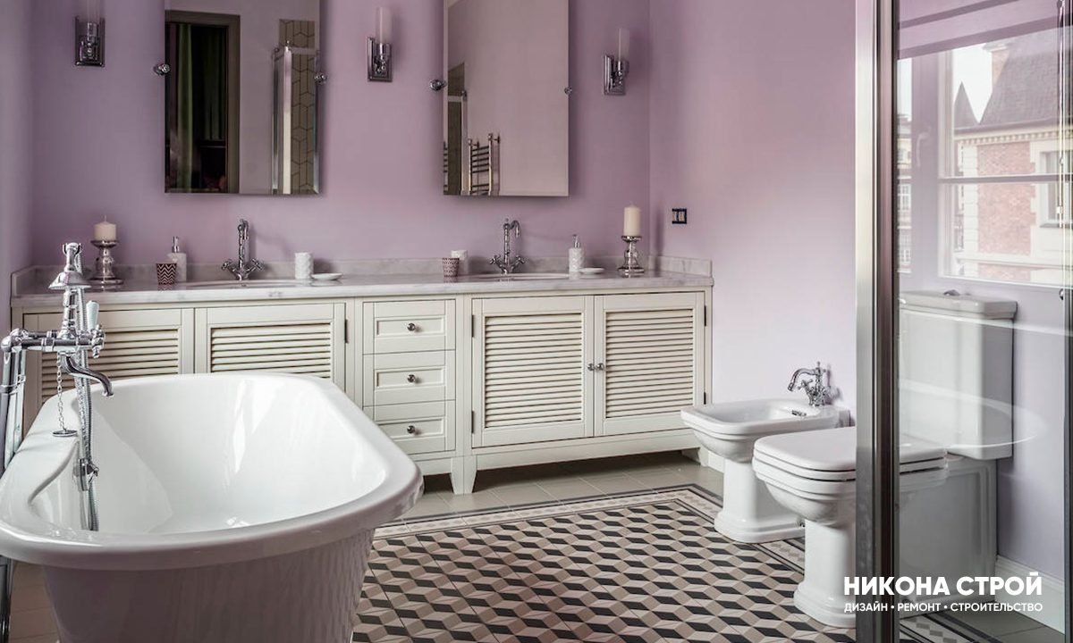 Ванная в светло сиреневых тонах