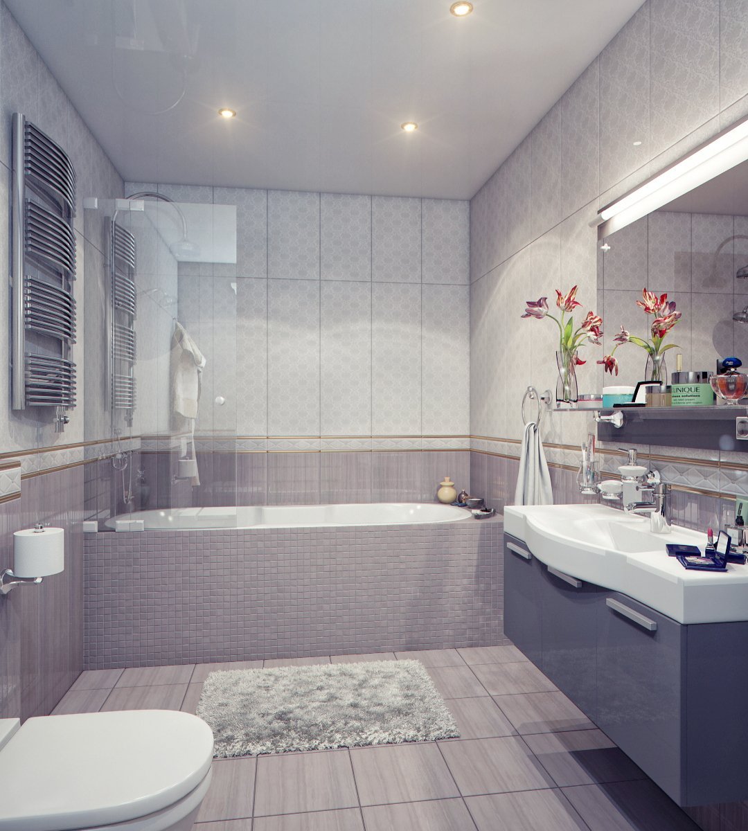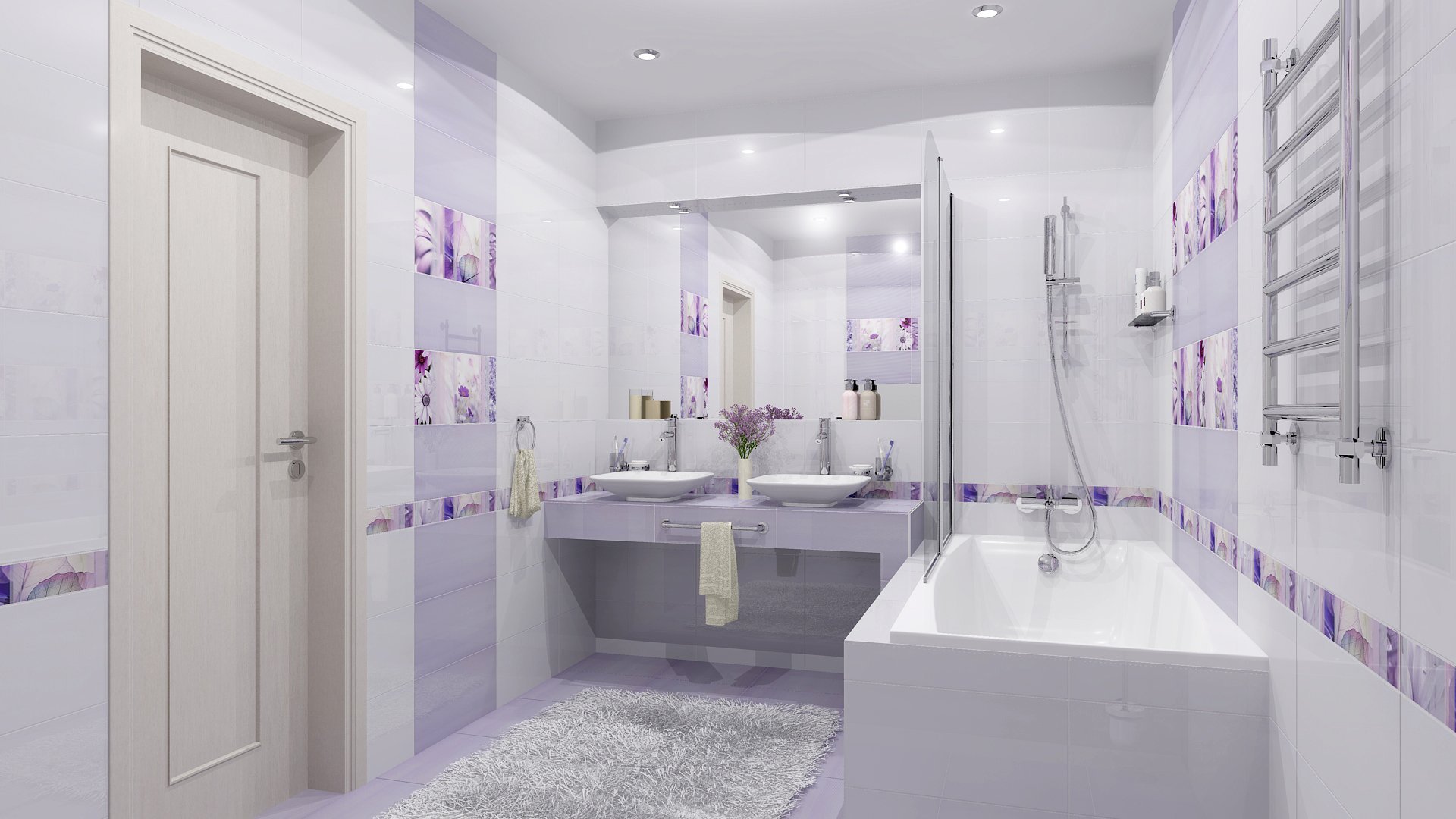 Лавандовый цвет в интерьере ванной