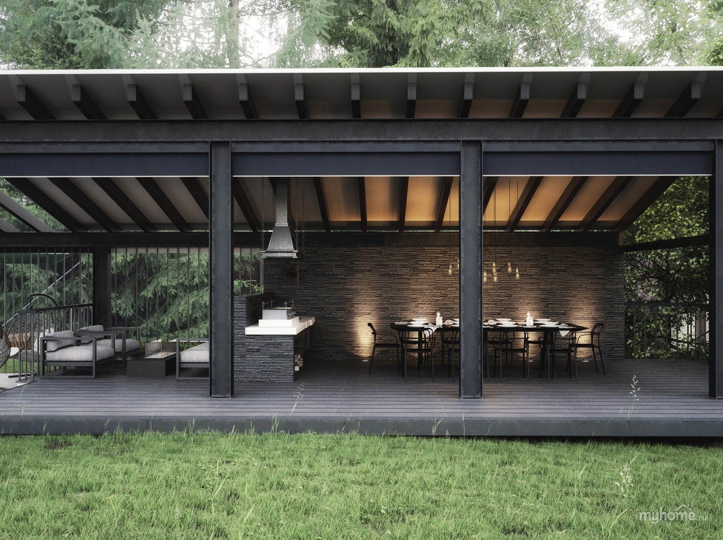 Беседка с мангальной зоной проекты в стиле лофт