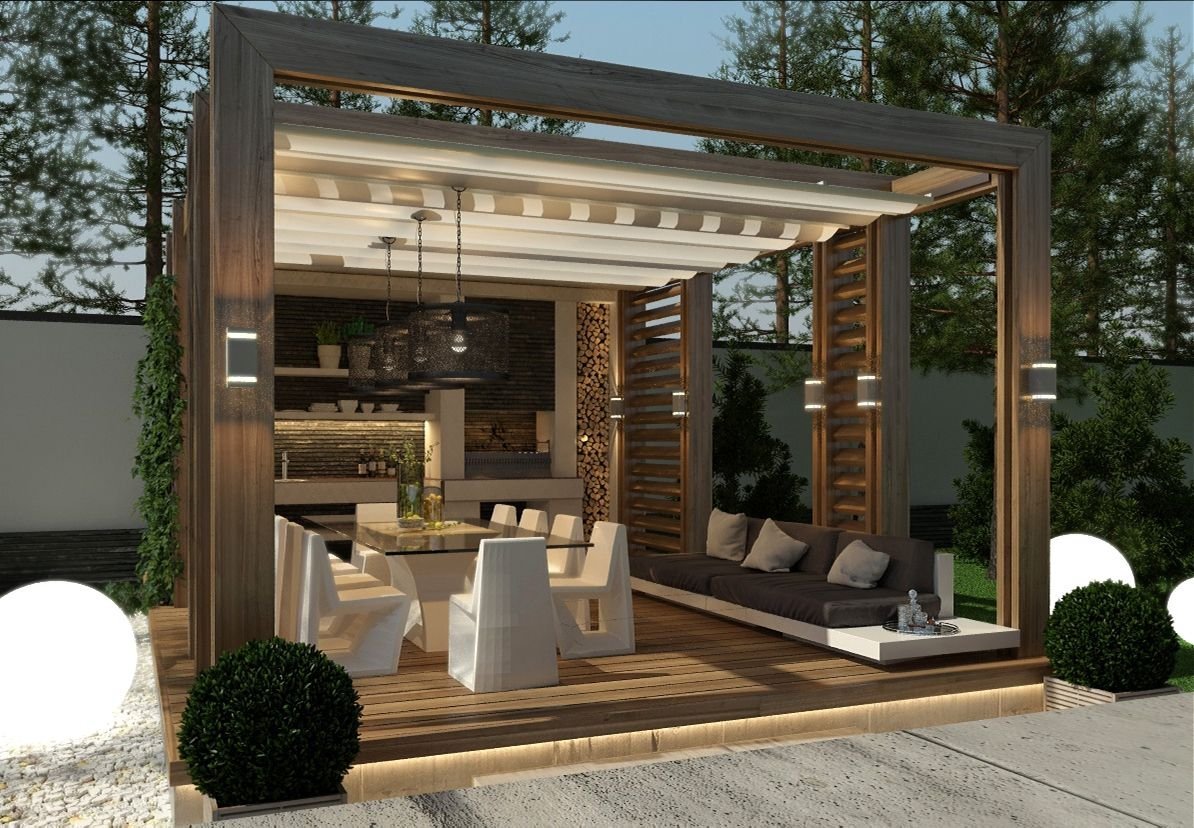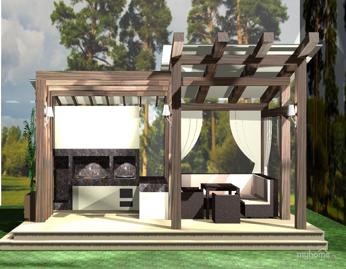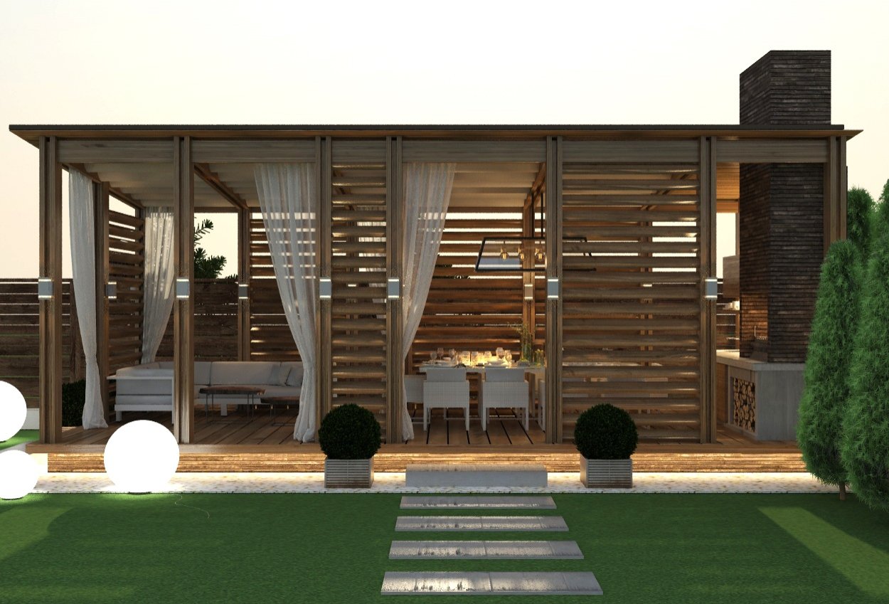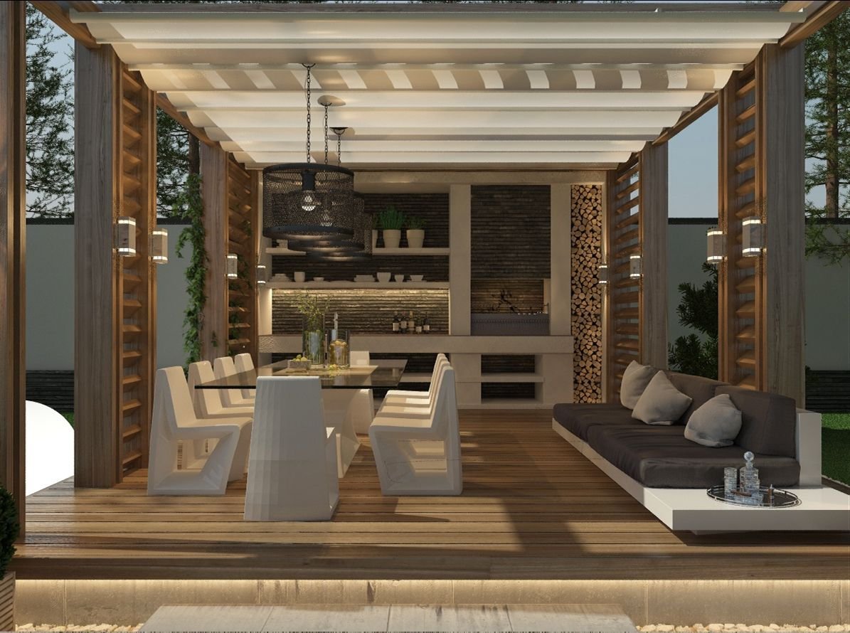 Пергола с барбекю в современном стиле