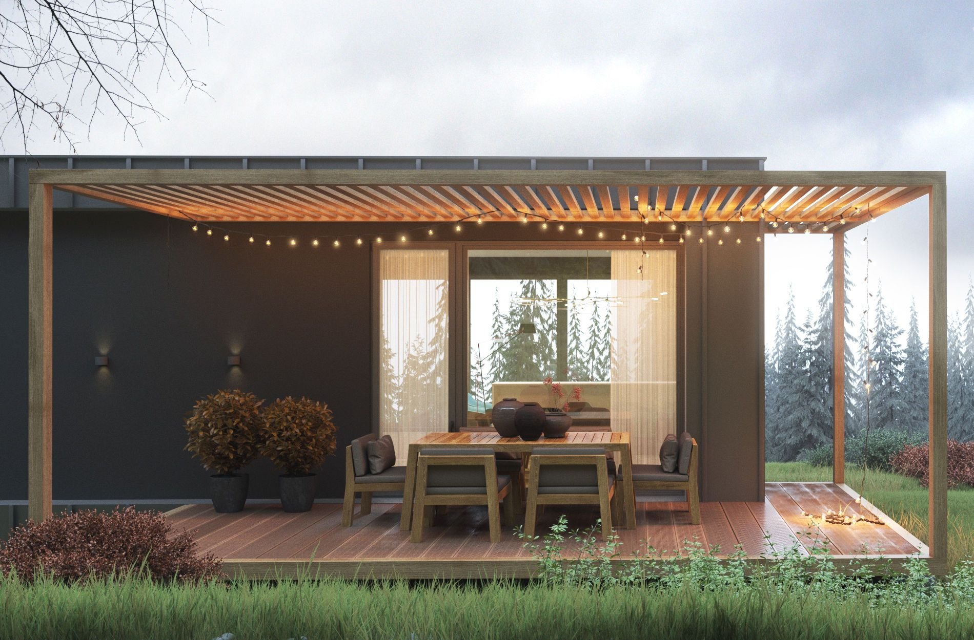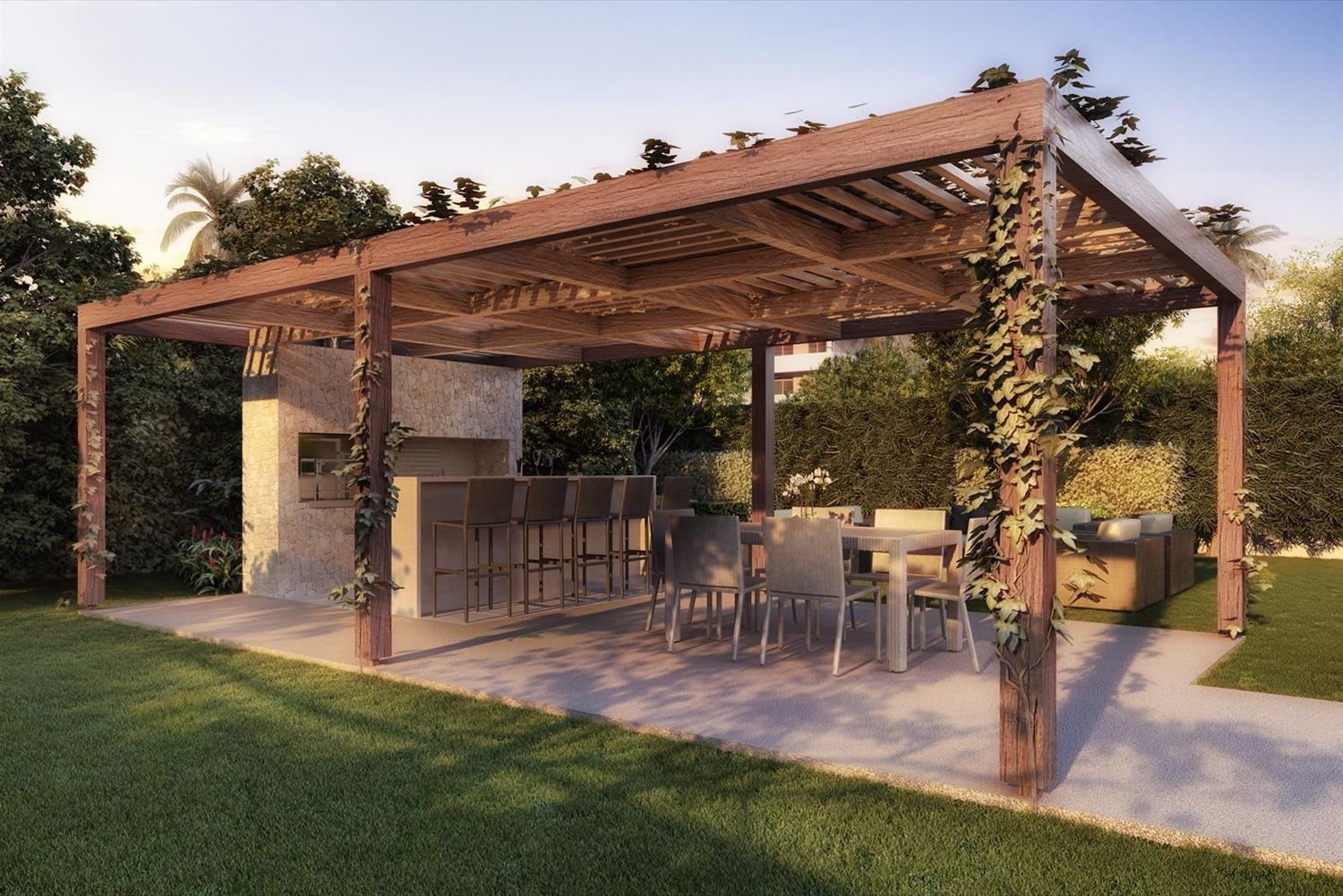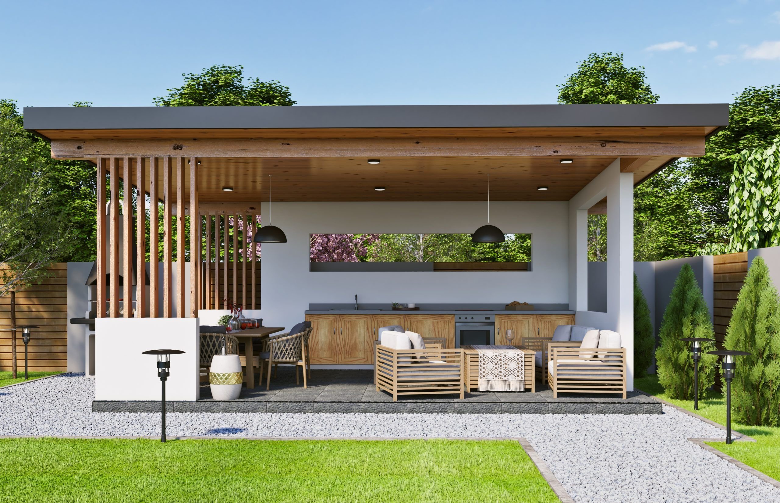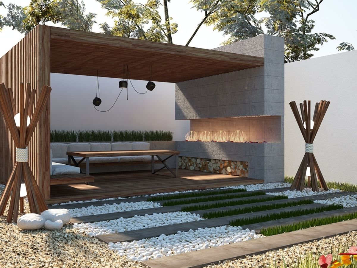 Пергола с барбекю в современном стиле