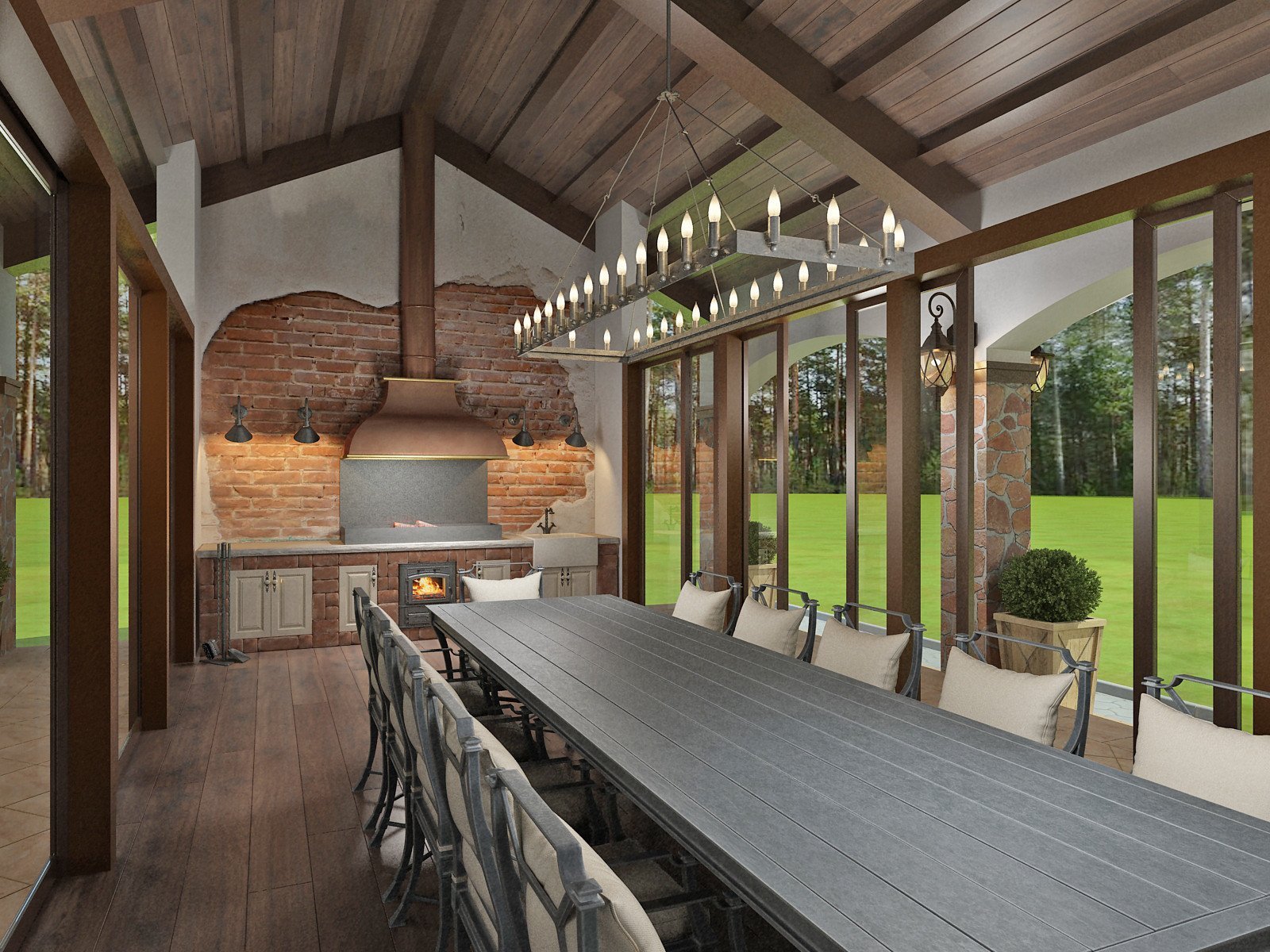 Закрытая веранда с мангалом