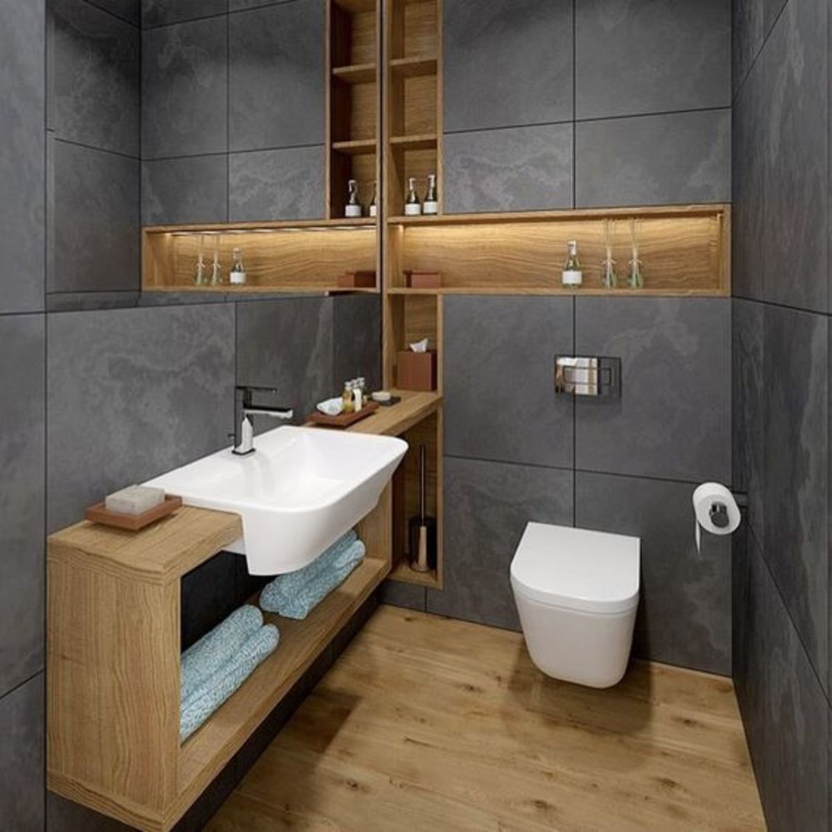 Туалетная комната с навесным унитазом