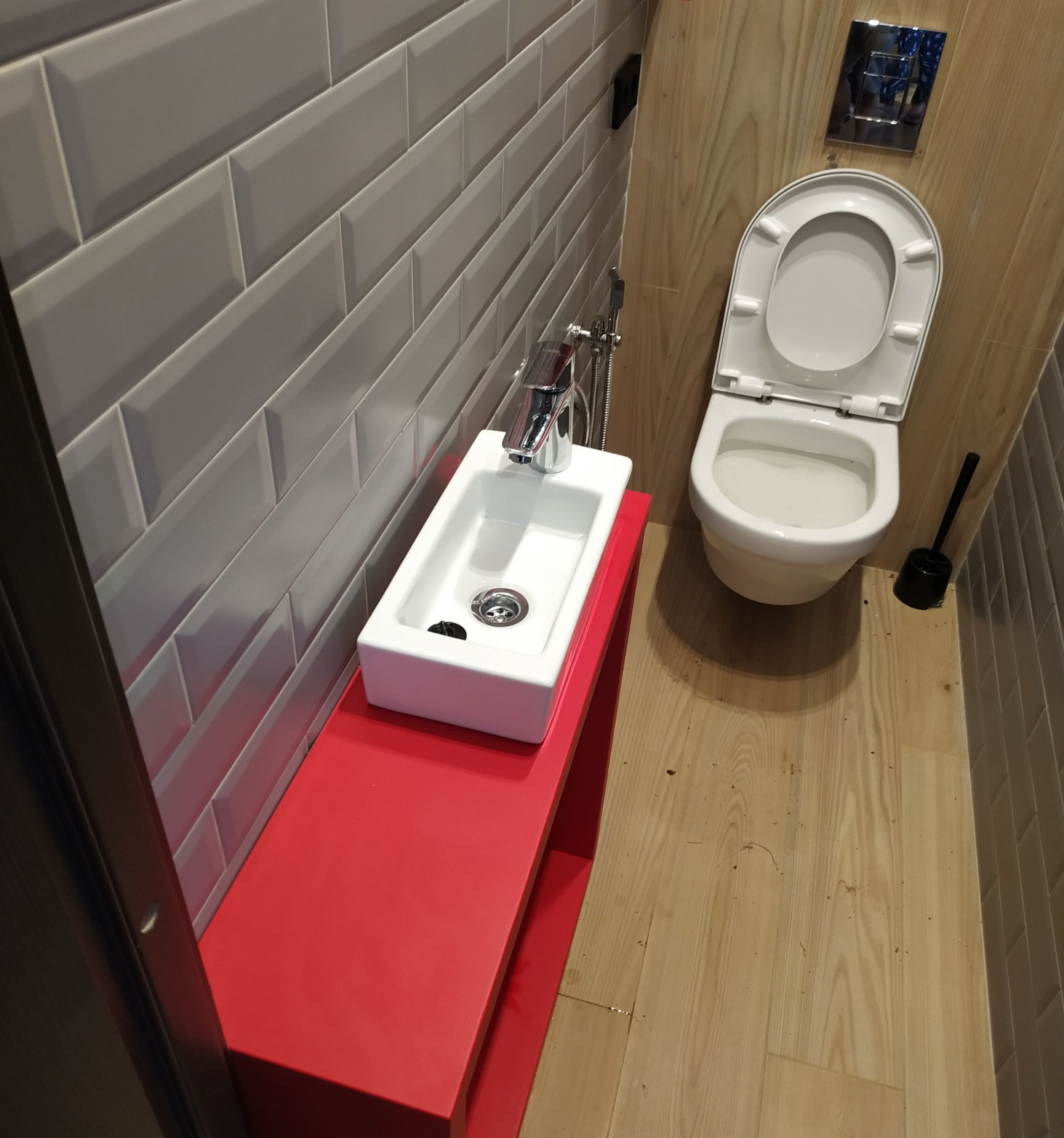 Туалет с инсталляцией и раковиной
