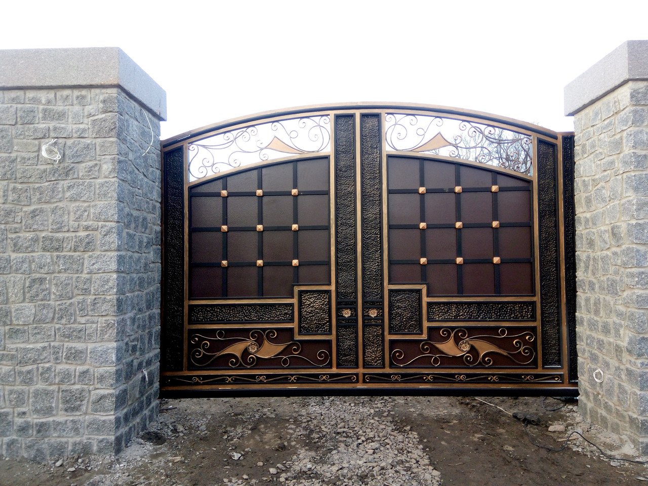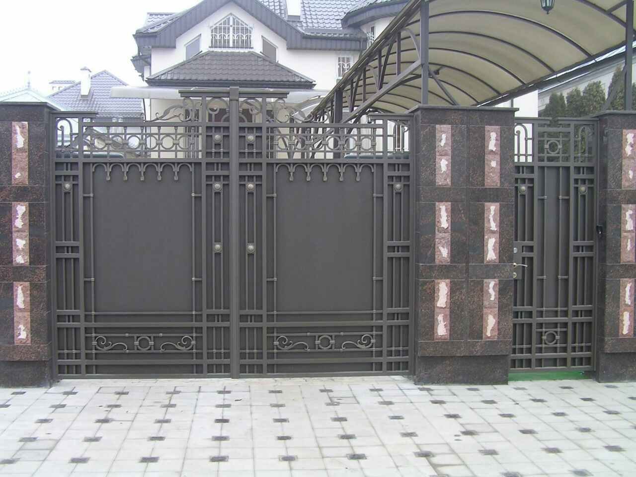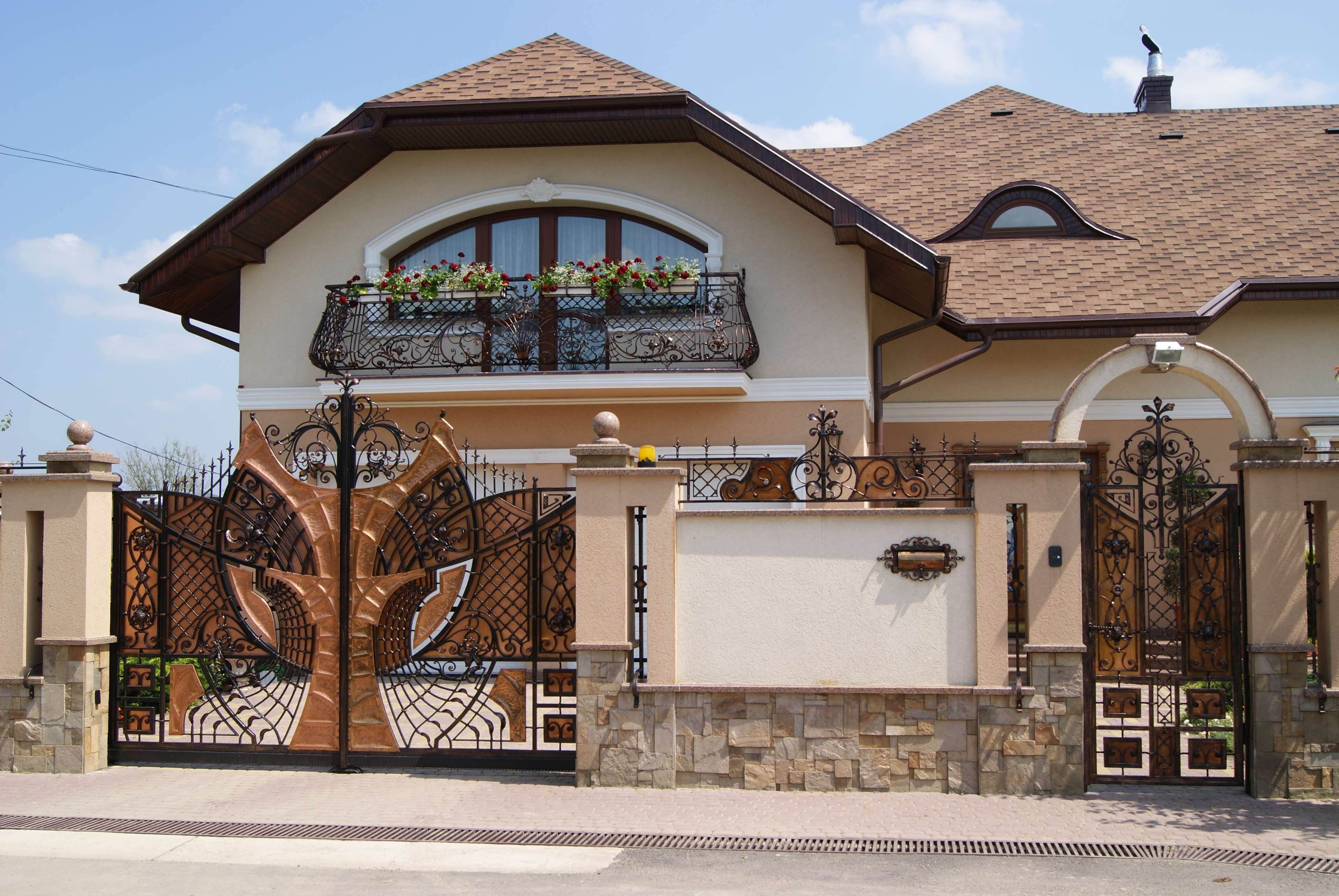 Красивые ворота у коттеджей