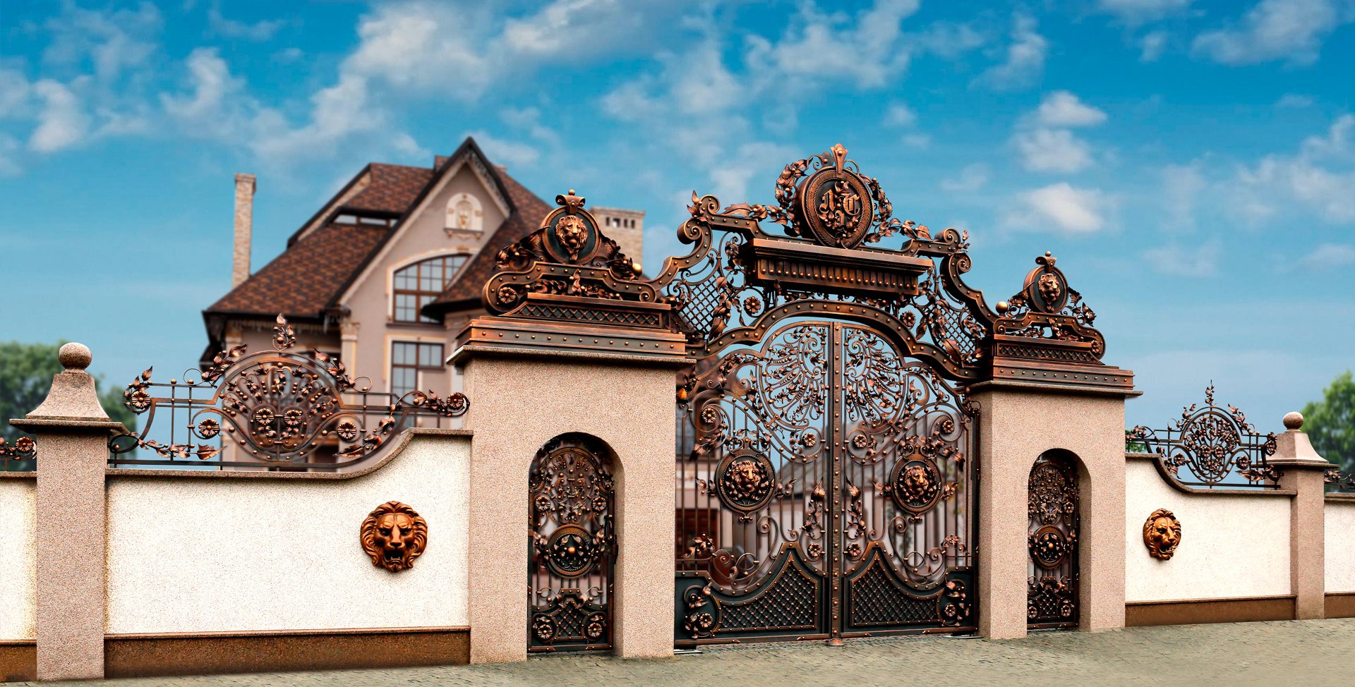 Кованые ворота со львом Коварт