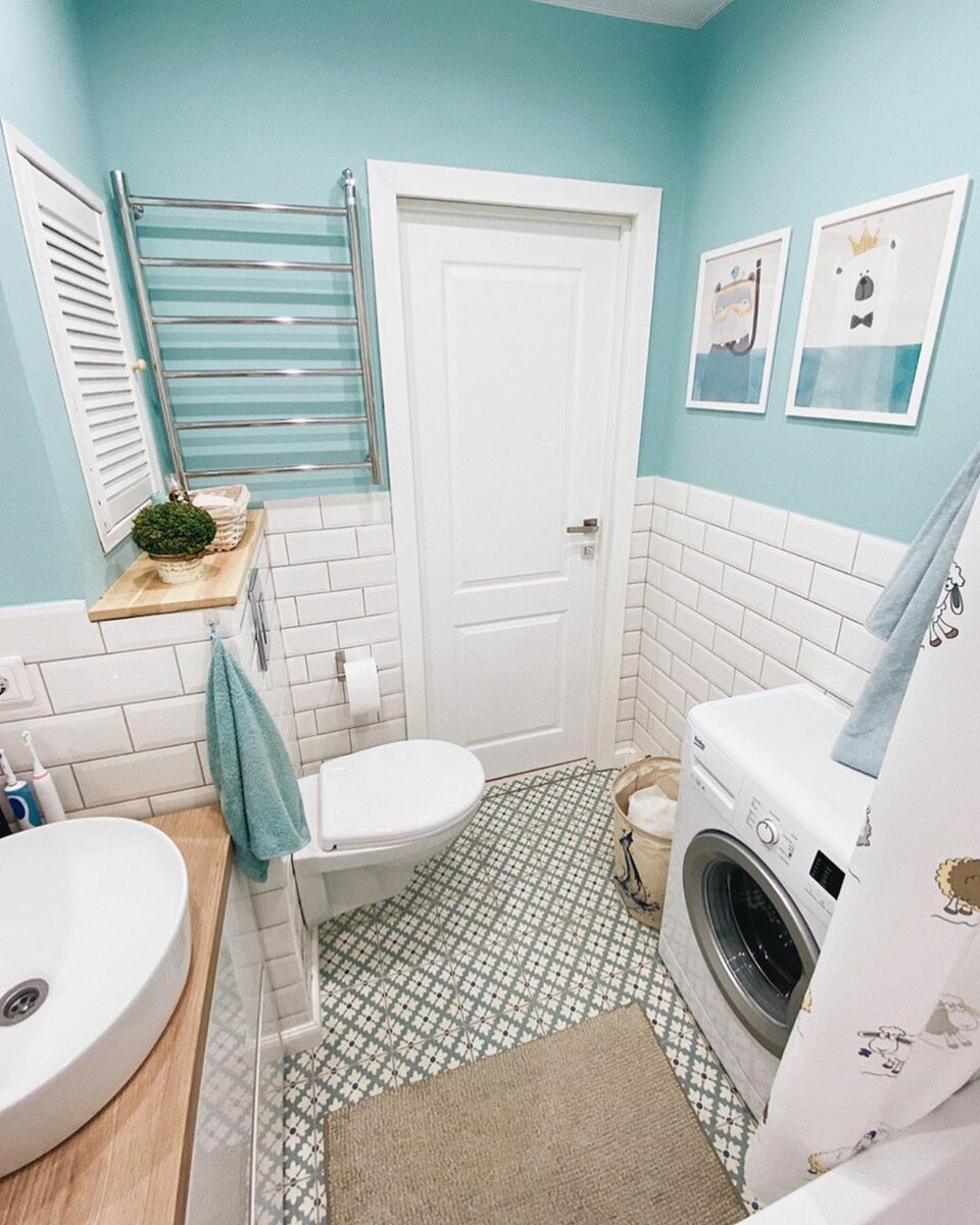 Отделка ванной комнаты плитка и краска