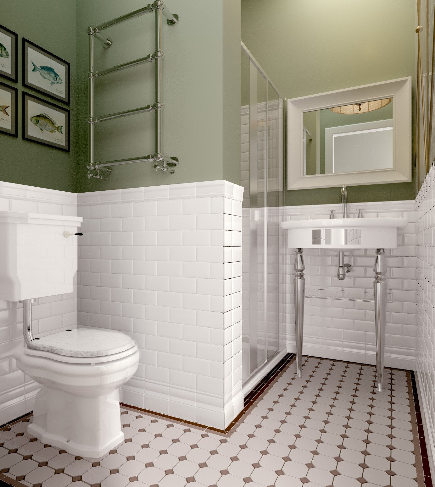 Ванная с окрашенными стенами и плиткой
