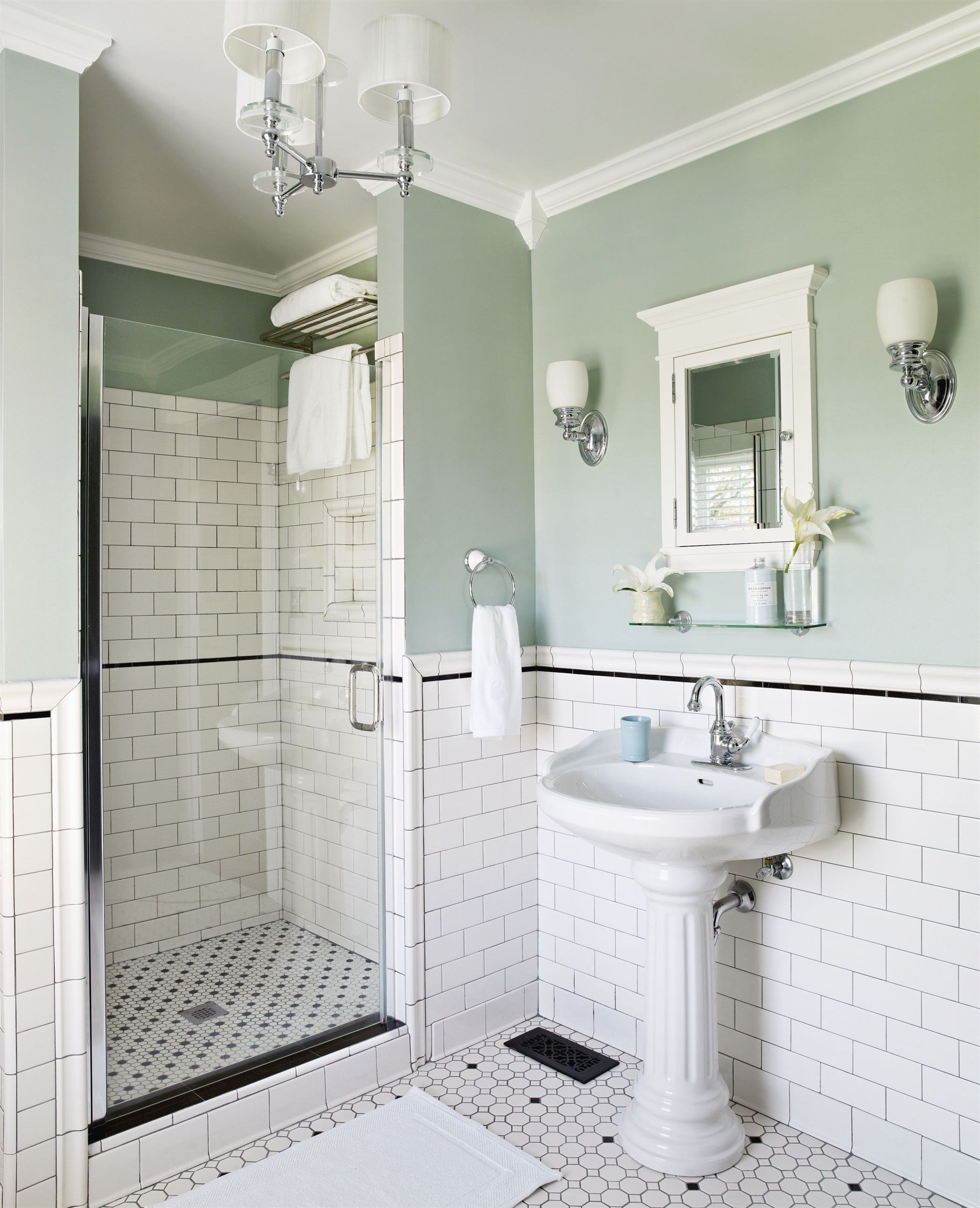 Ванная с плиткой до середины стены
