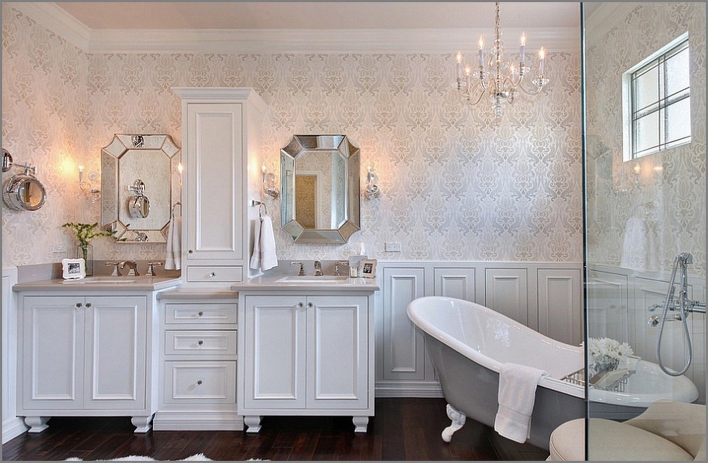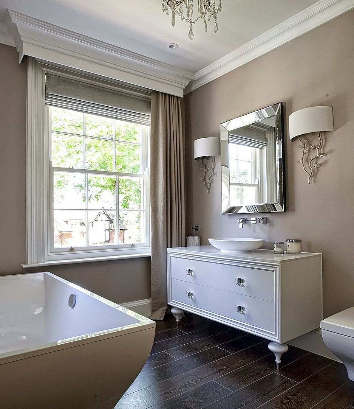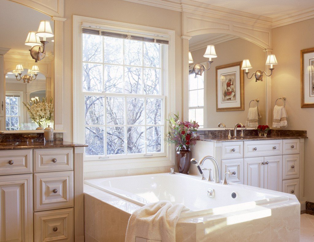 Ванная с окном в классическом стиле