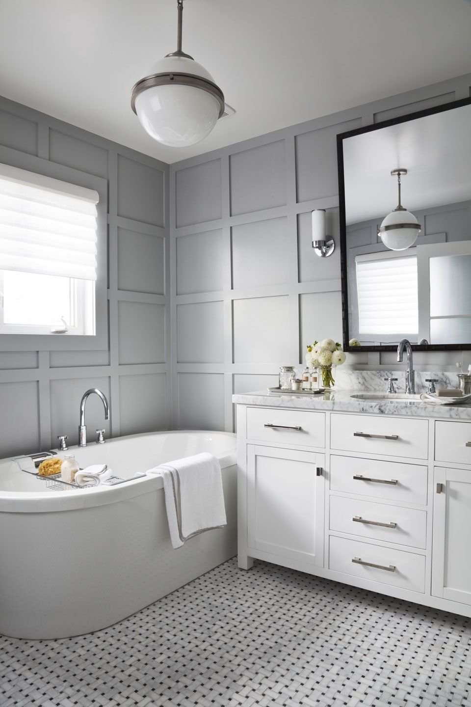 Серо белая ванная комната