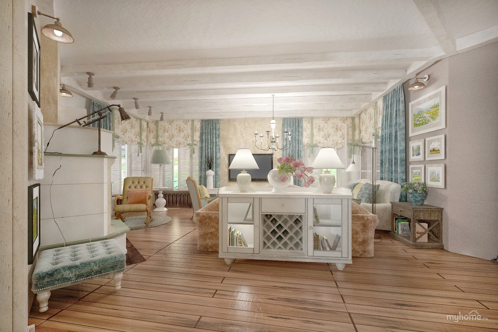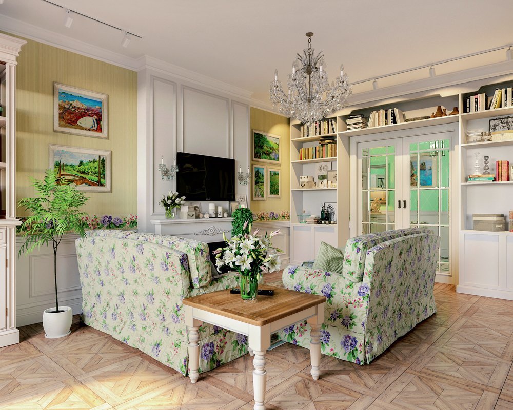Стиль Прованс в интерьере гостиной