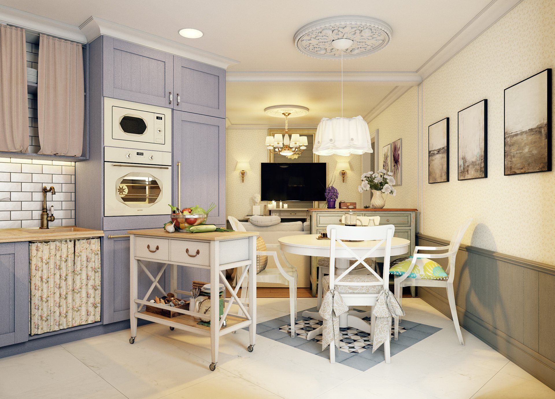Интерьер кухни-гостиной в стиле Прованс