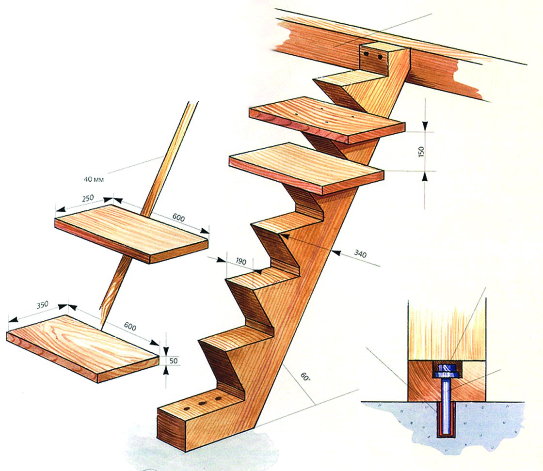 Чертежи лестниц из дерева на крыльцо