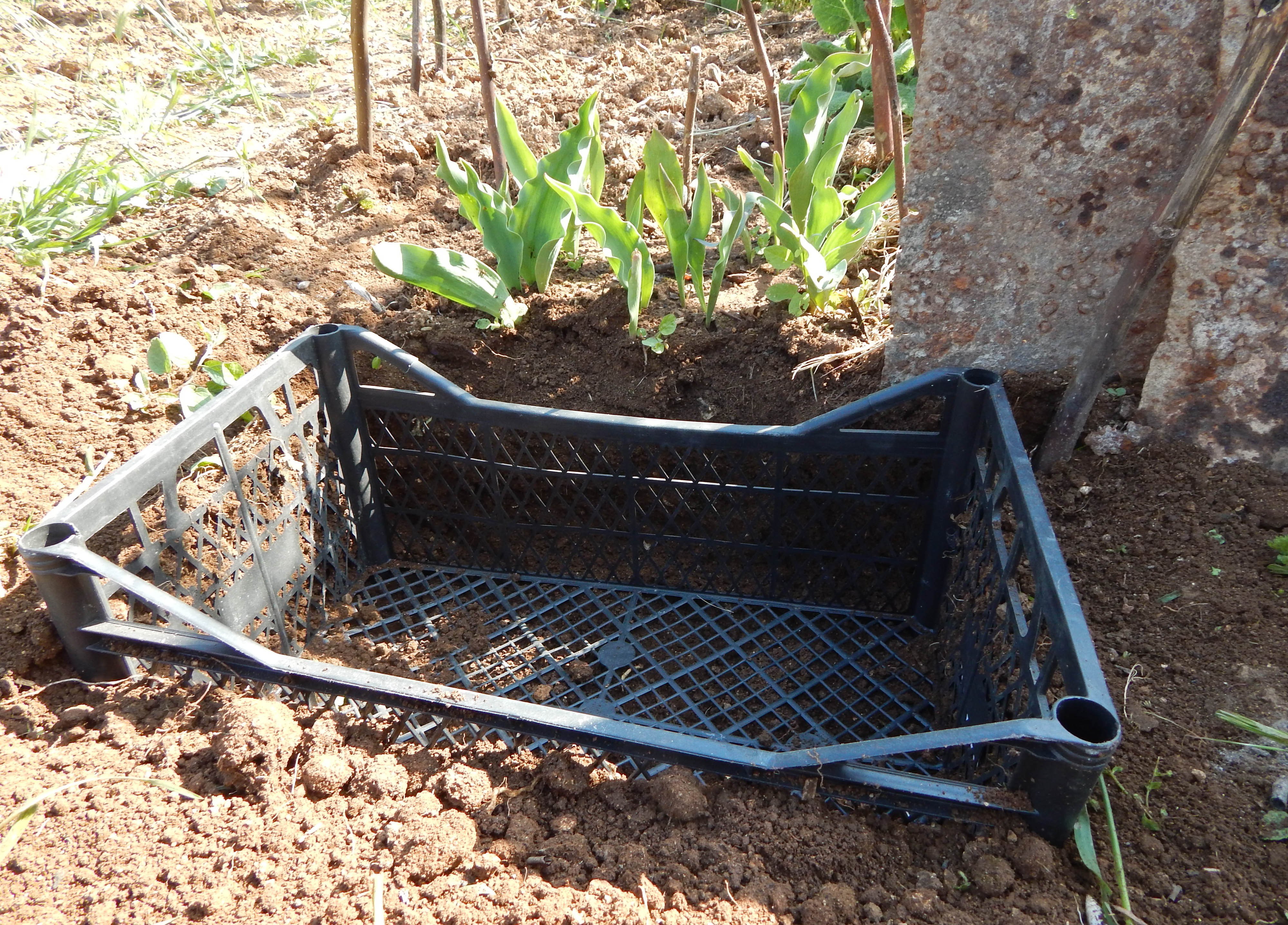 Пластиковые ящики в огороде