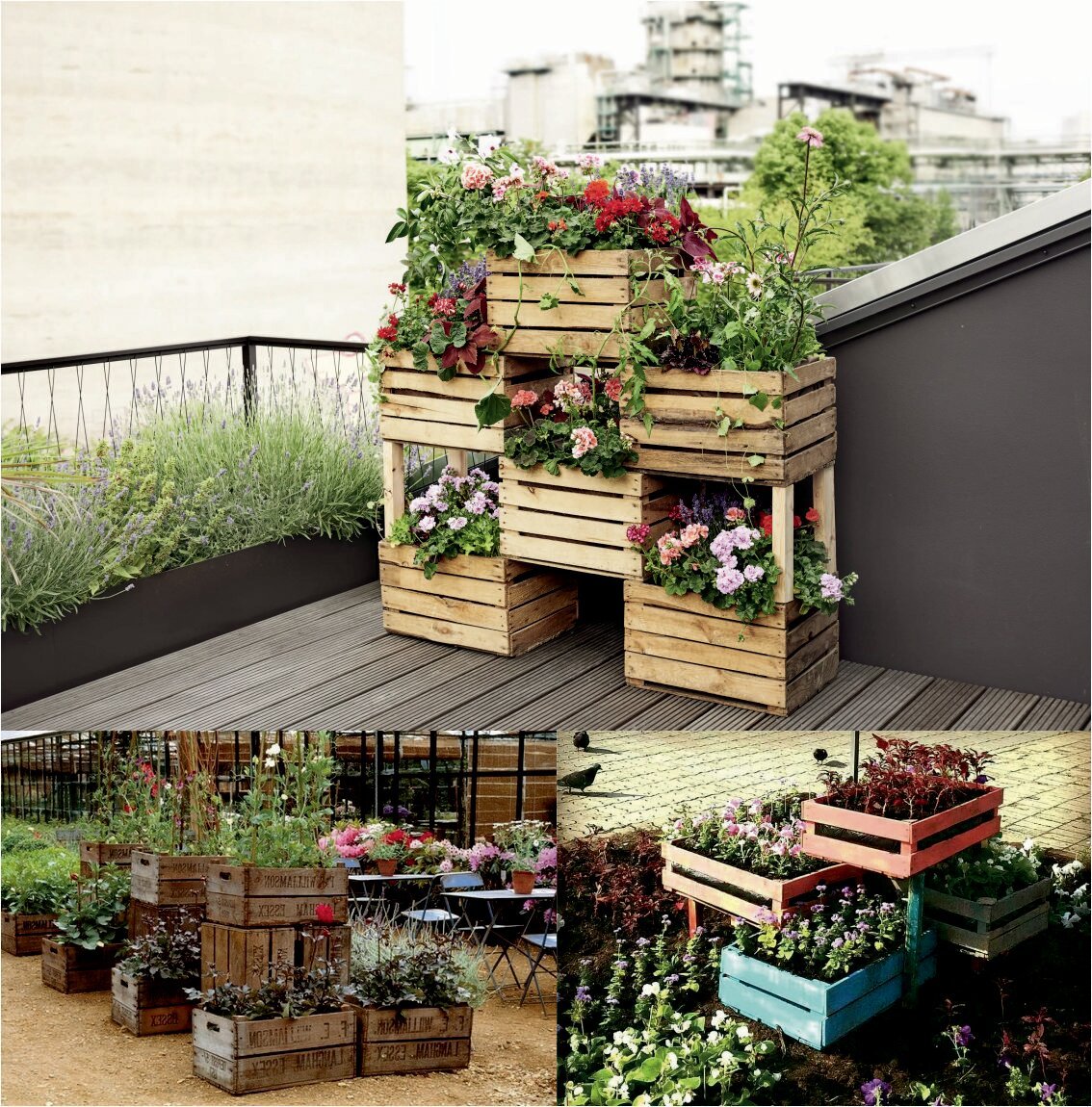Цветник из ящиков для фруктов