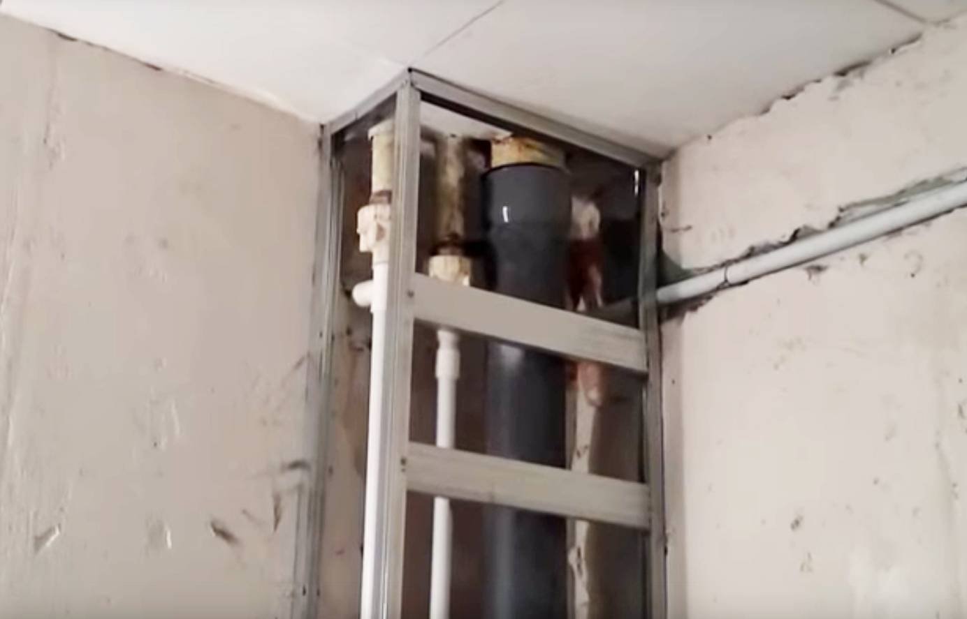 Конструкция короба для канализационной трубы из гипсокартона схема