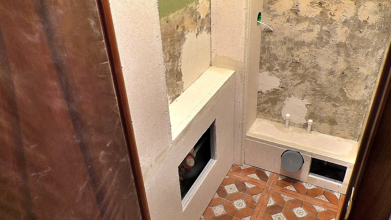 Отделка короба в ванной плиткой