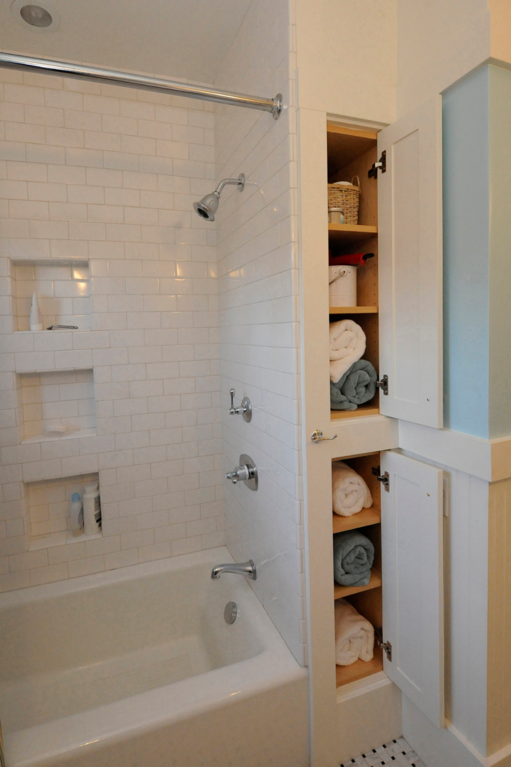 Короб в ванной с полками