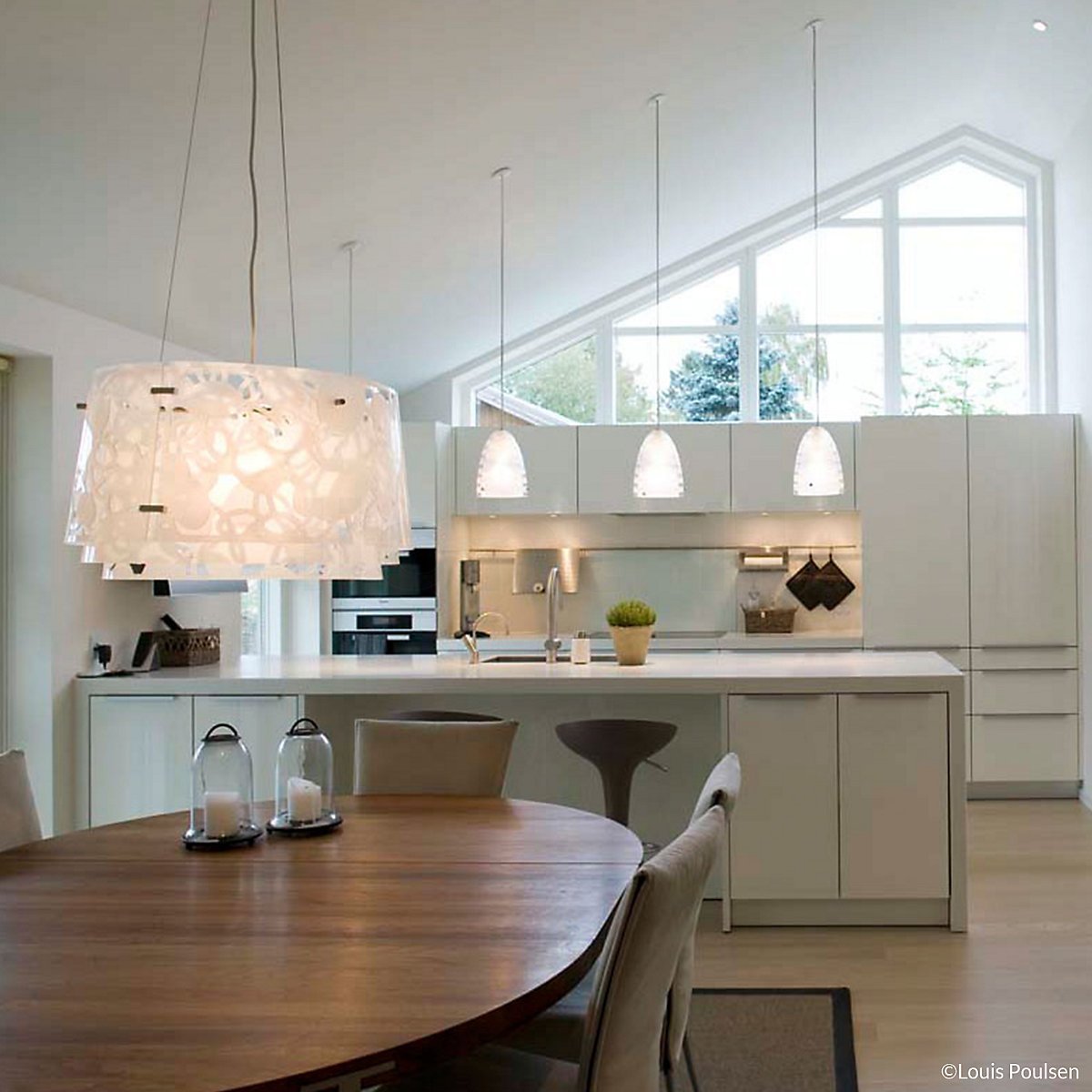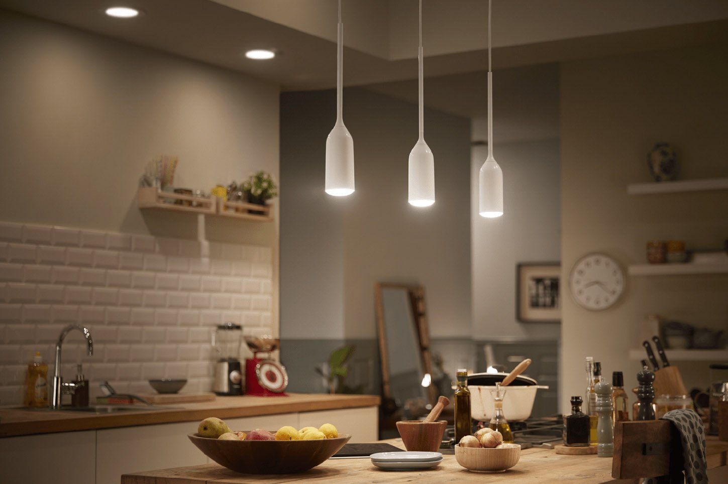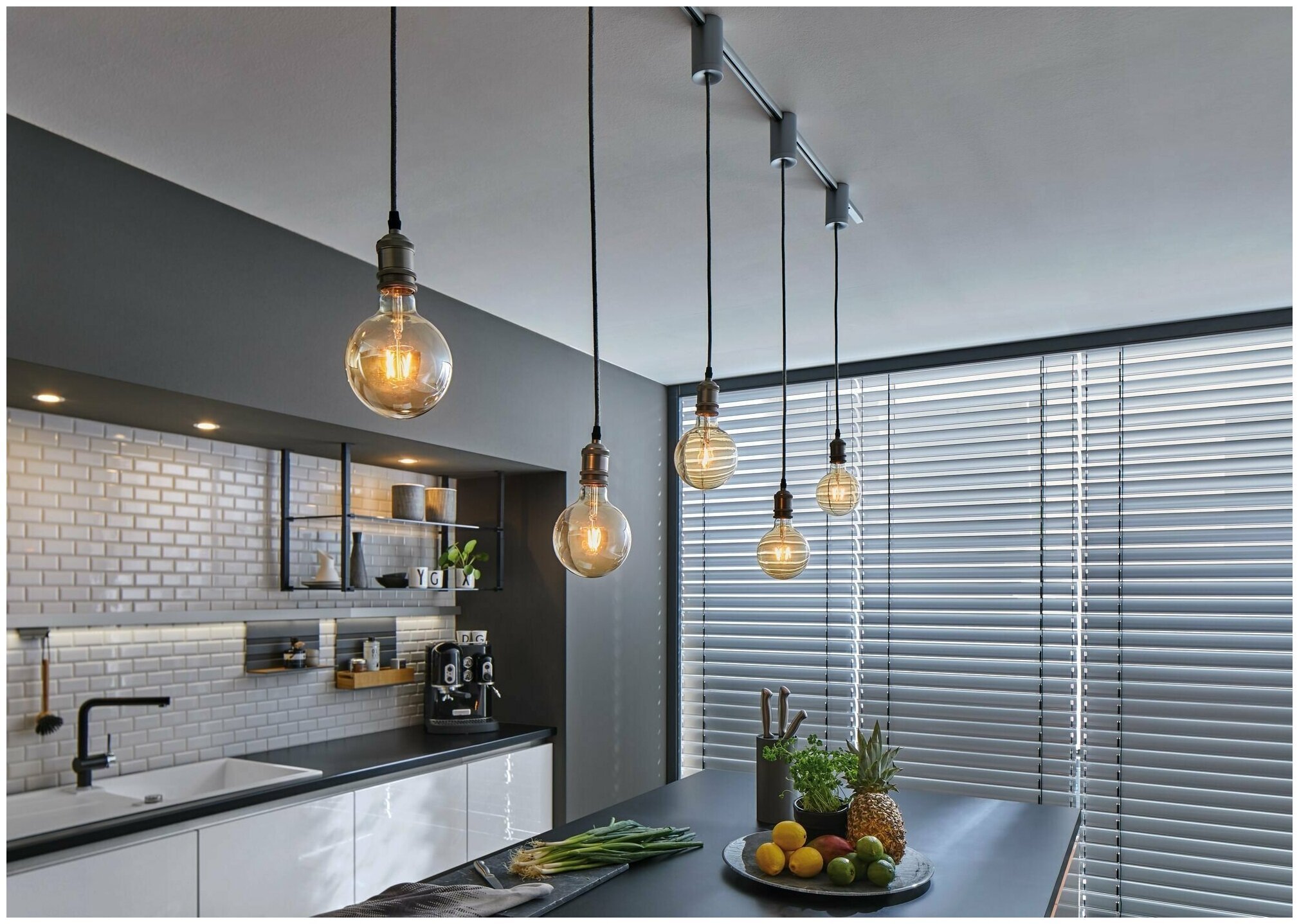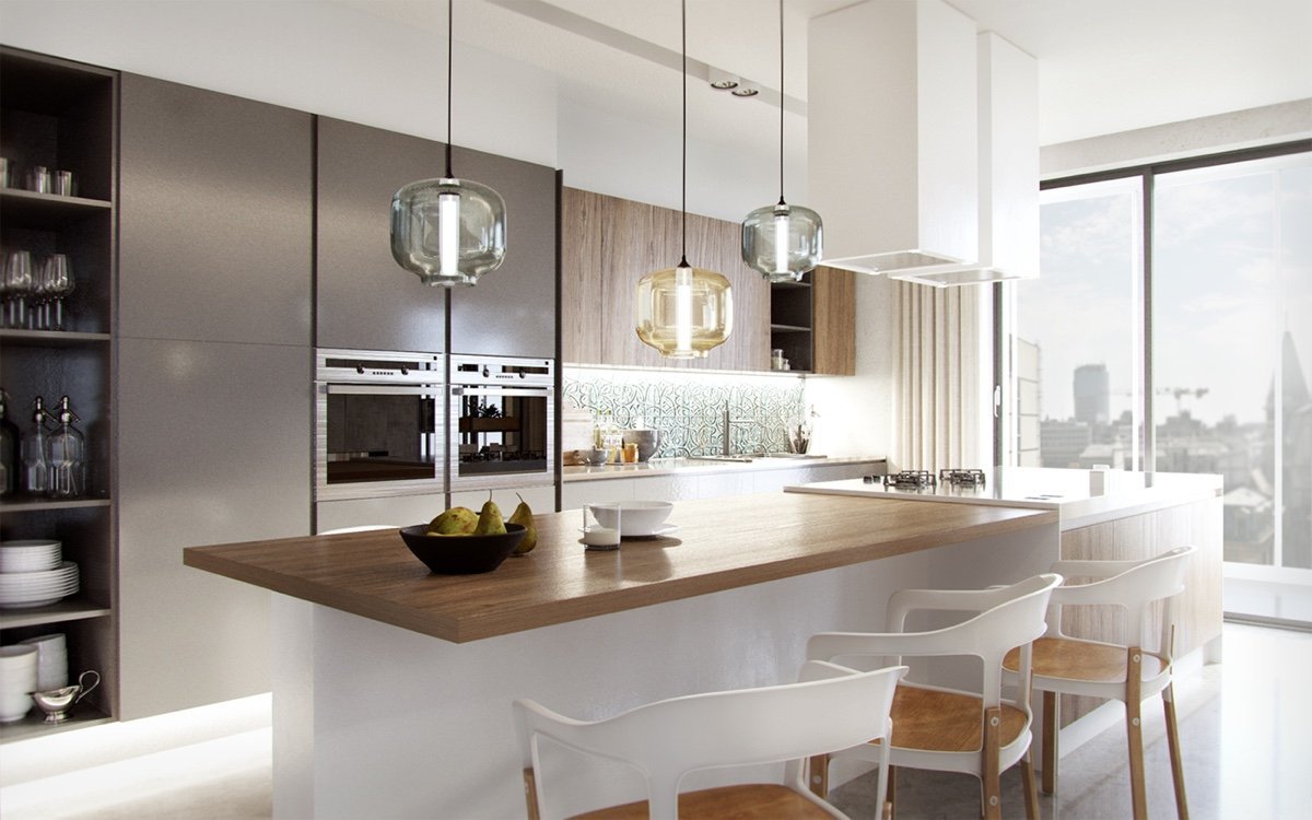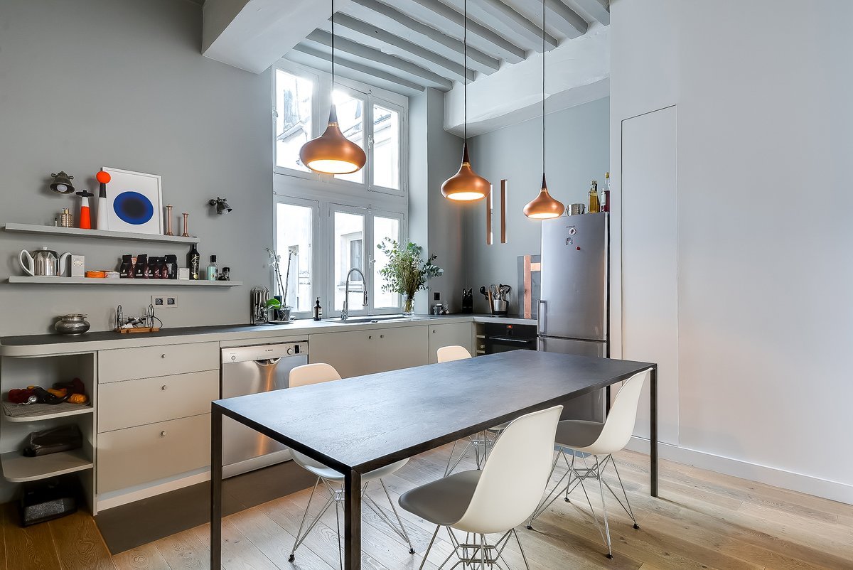 Светильники над кухонным столом в маленькой кухне