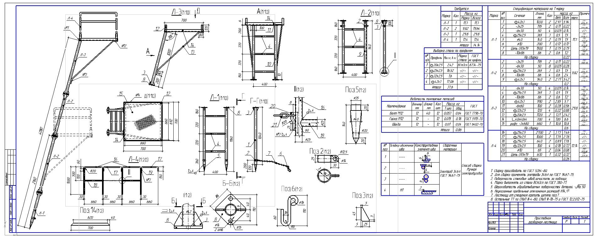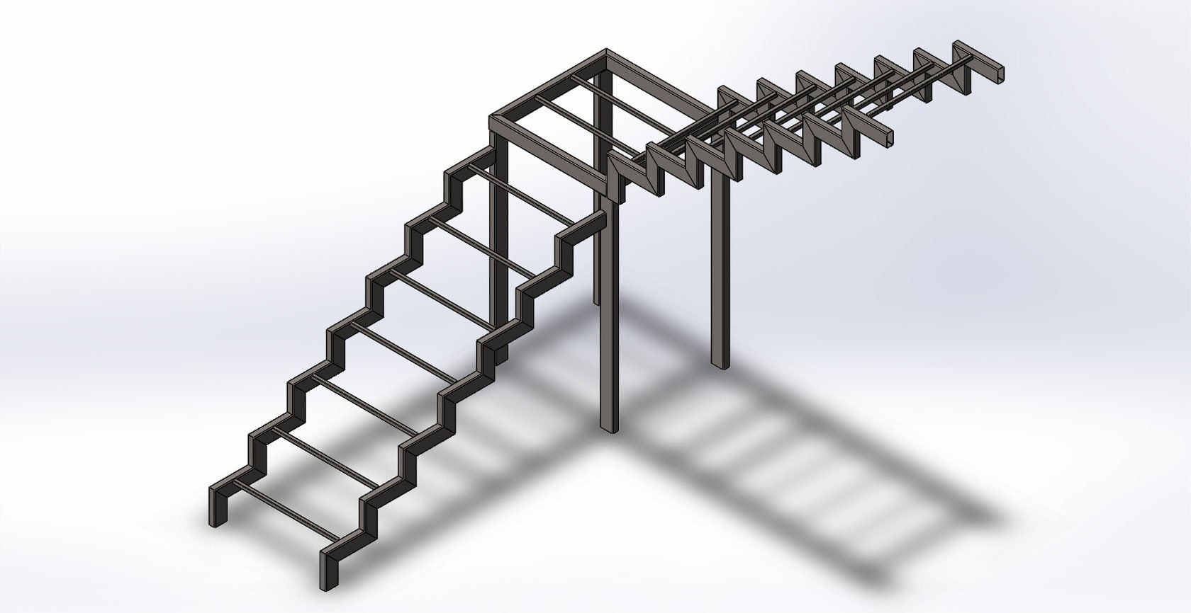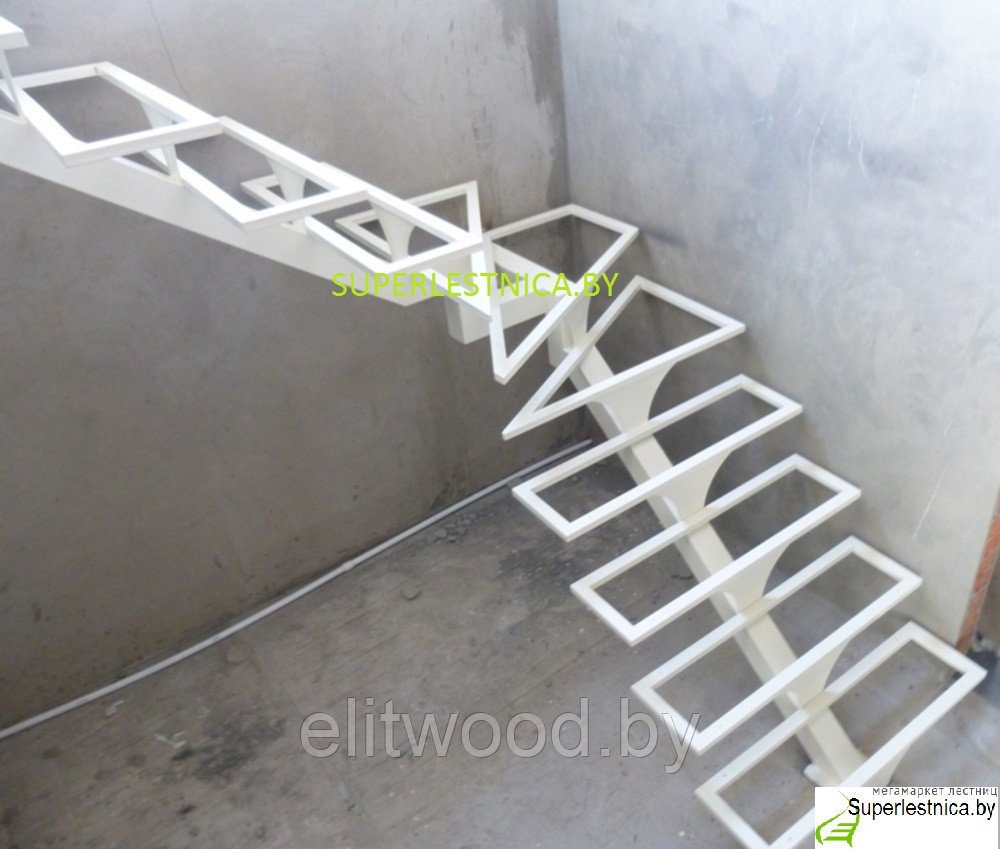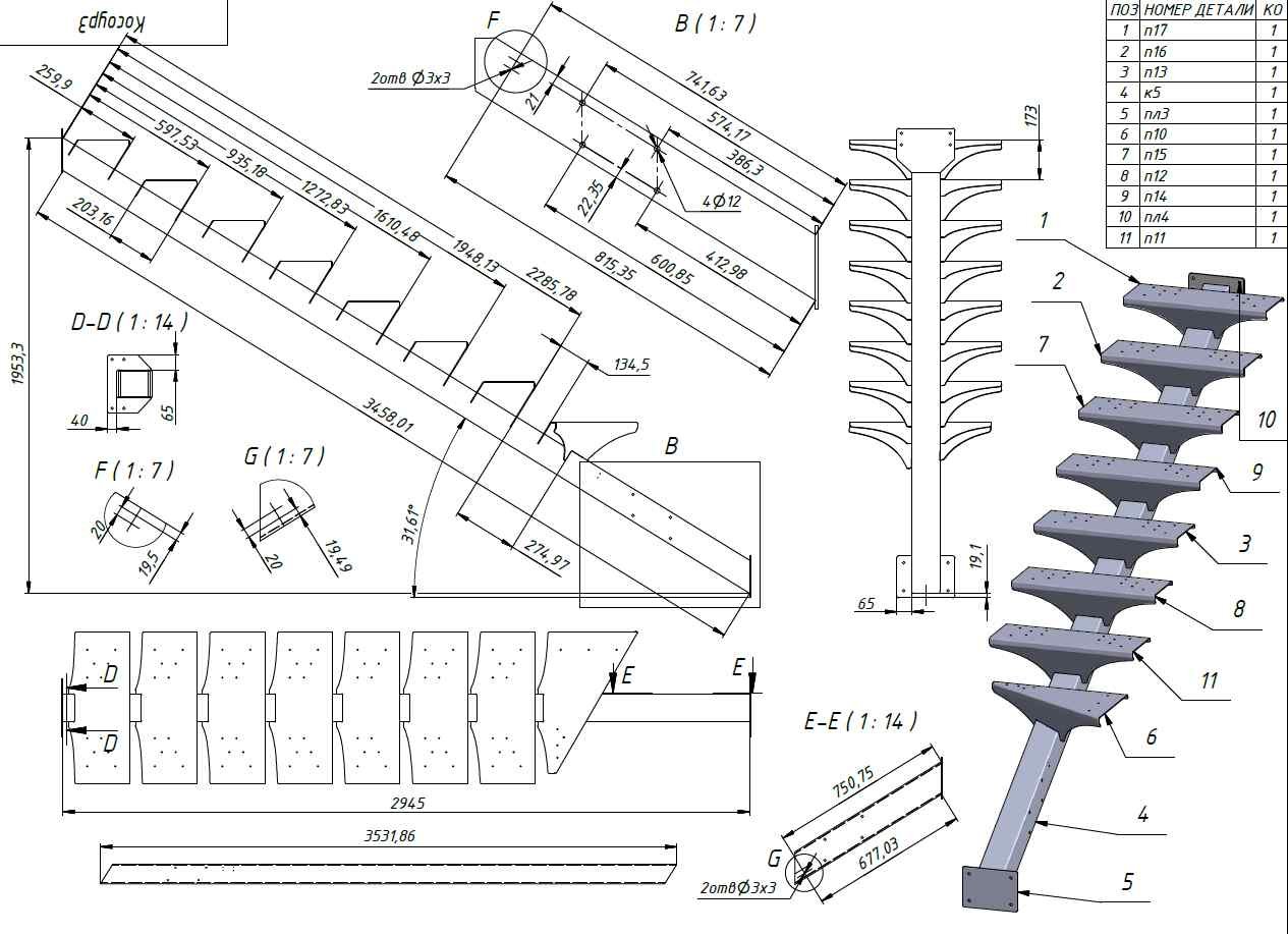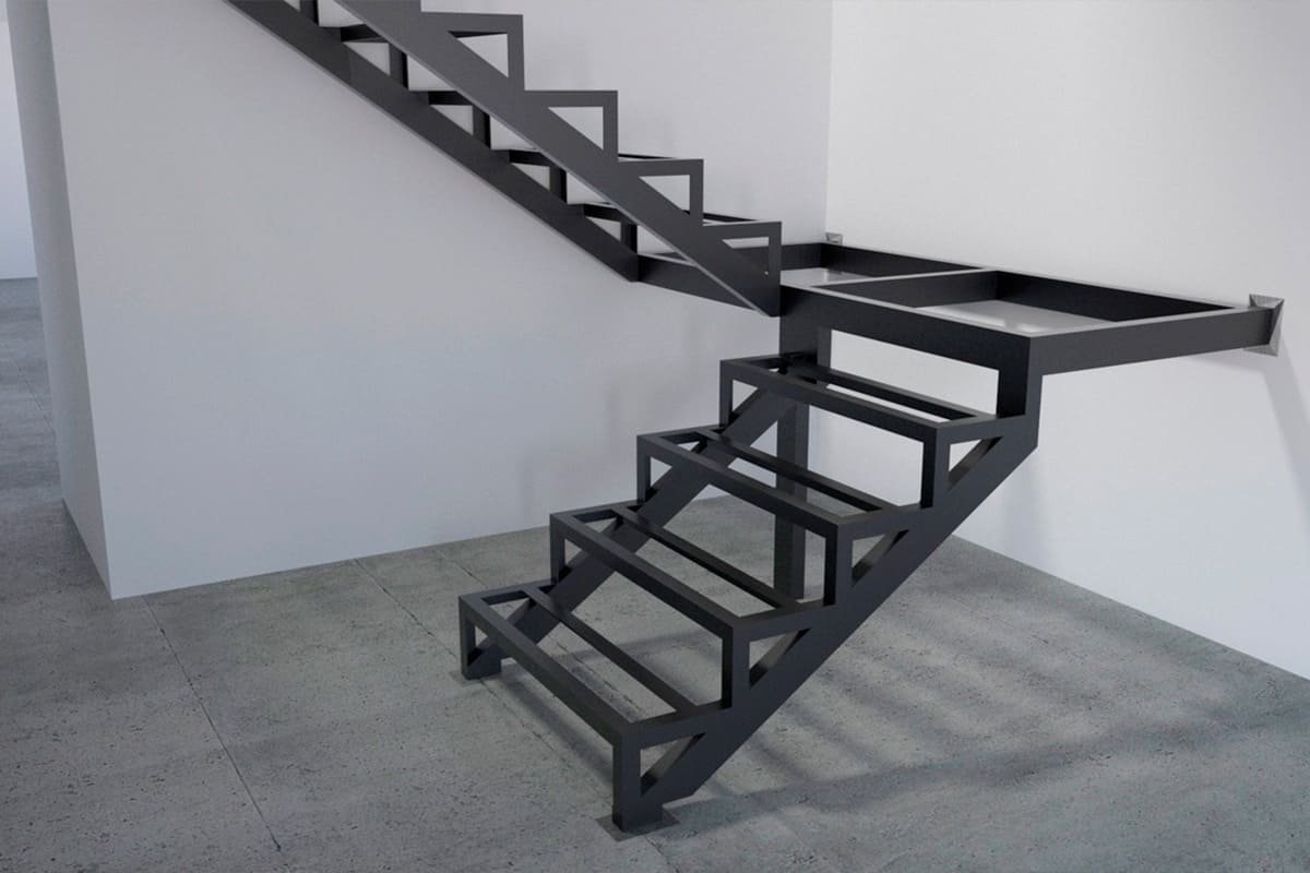 Лестница с ломаными косоурами из профильной трубы чертеж