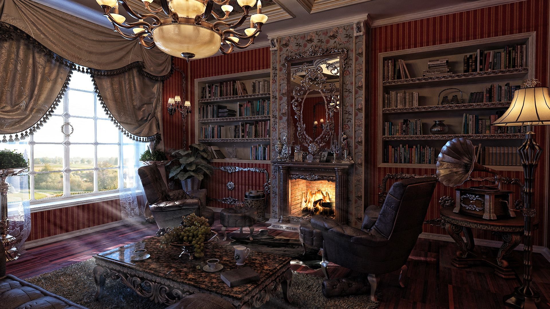 Викторианская Готика интерьер библиотека