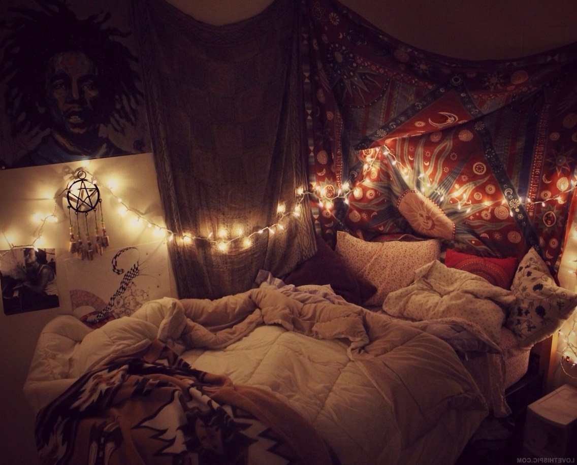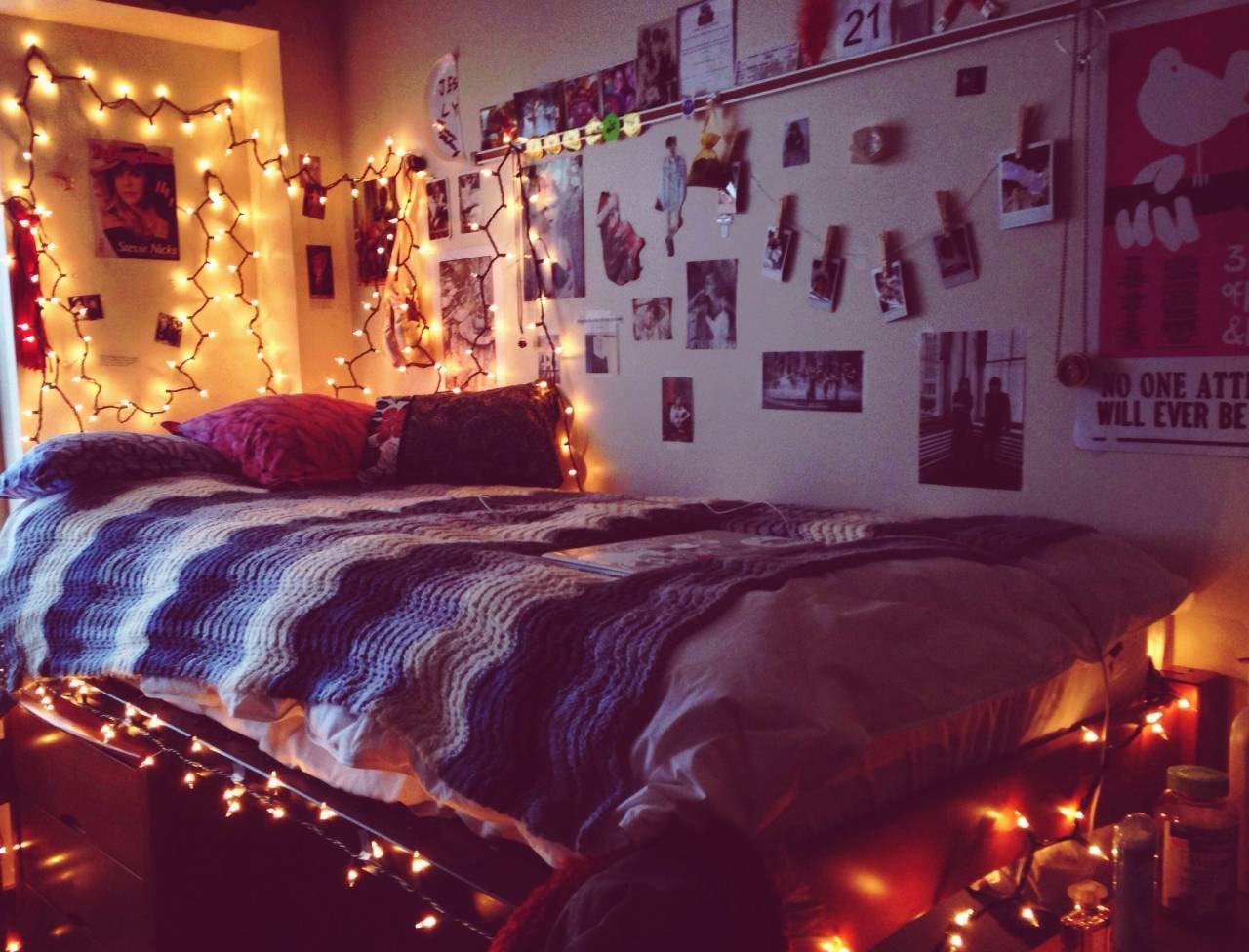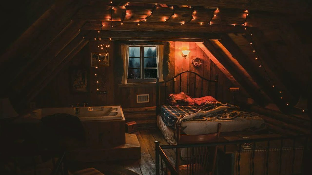Уютный чердак с гирляндами