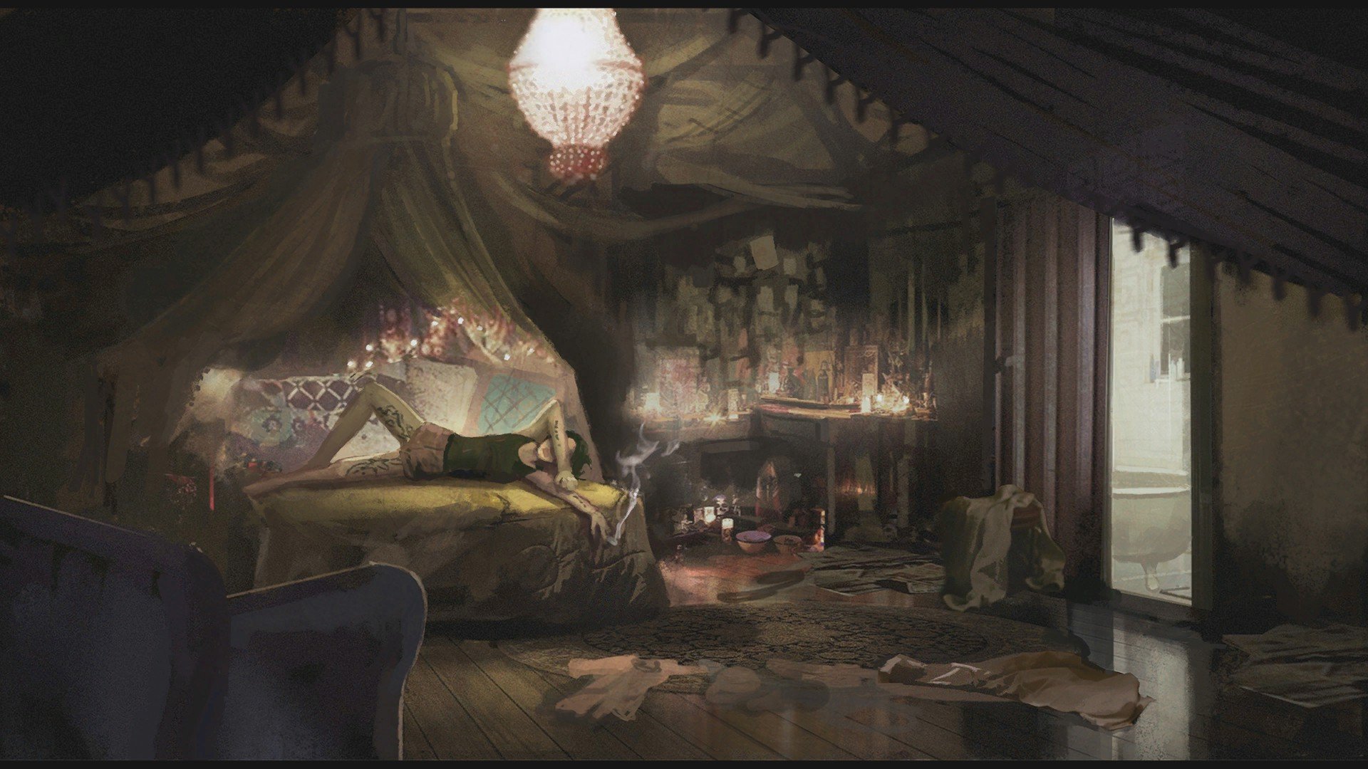 Аниме комната ночью