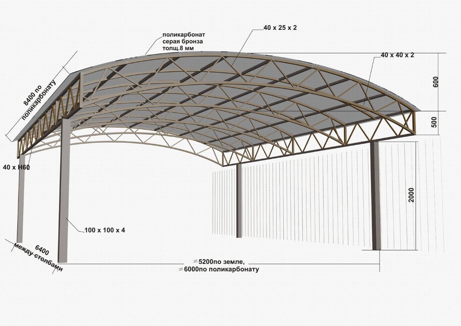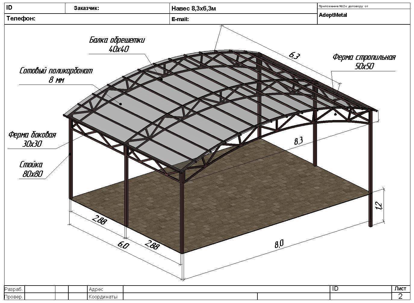 Навес из поликарбоната 3х6м чертежи