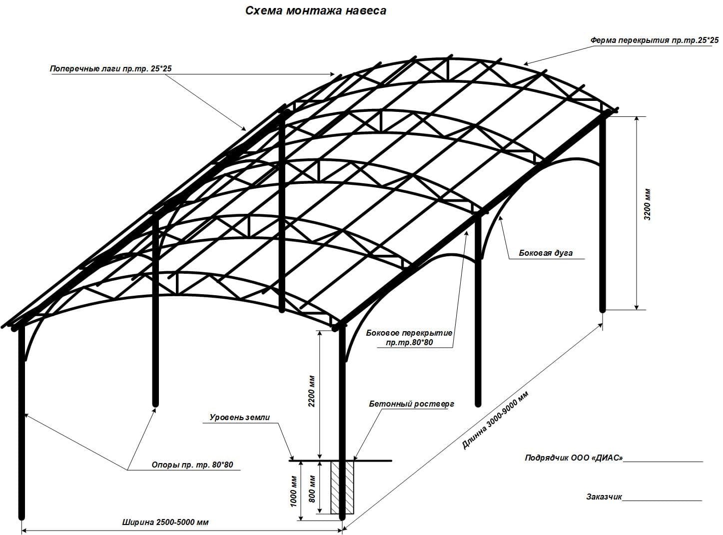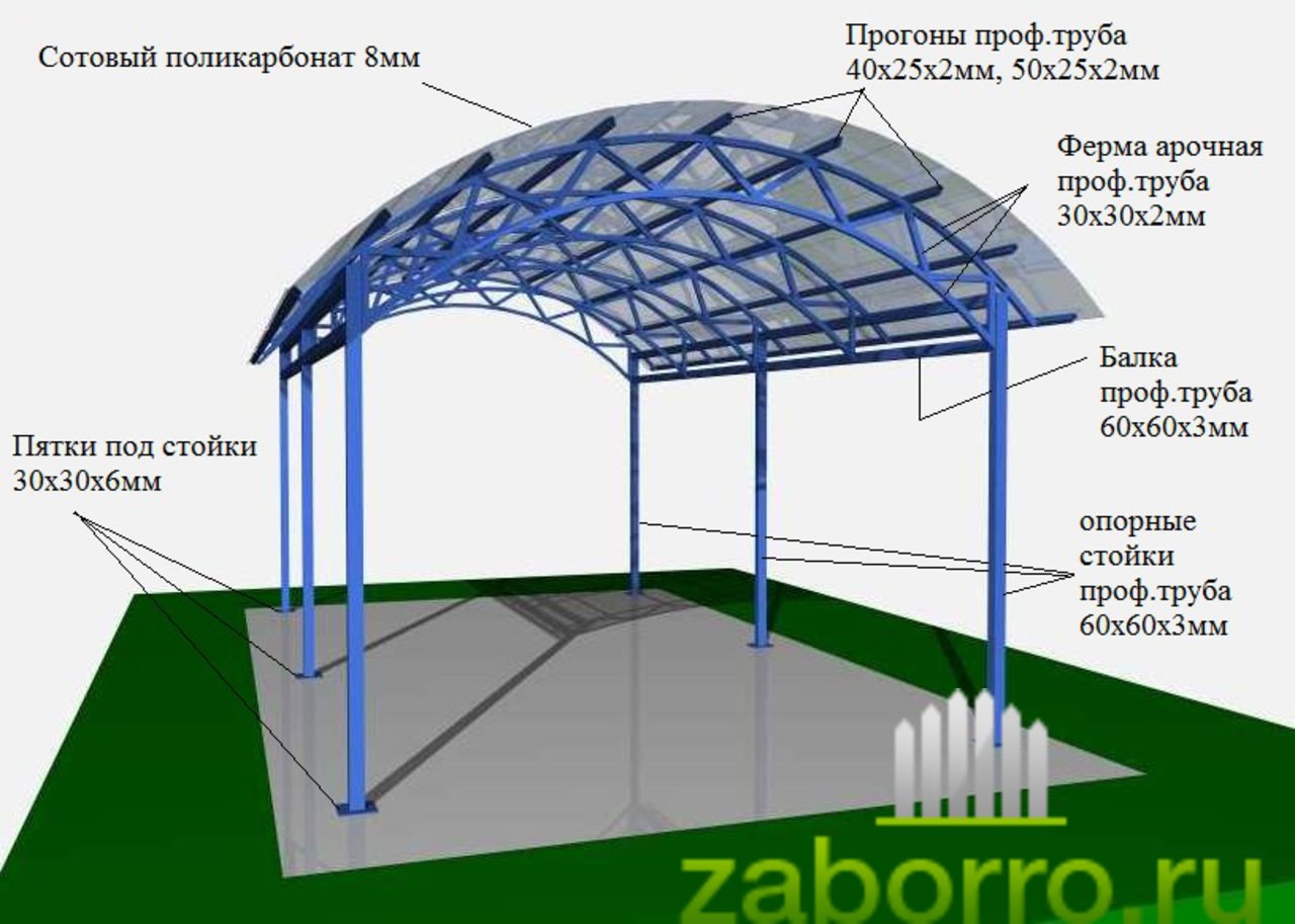 Навес арочный из поликарбоната чертежи