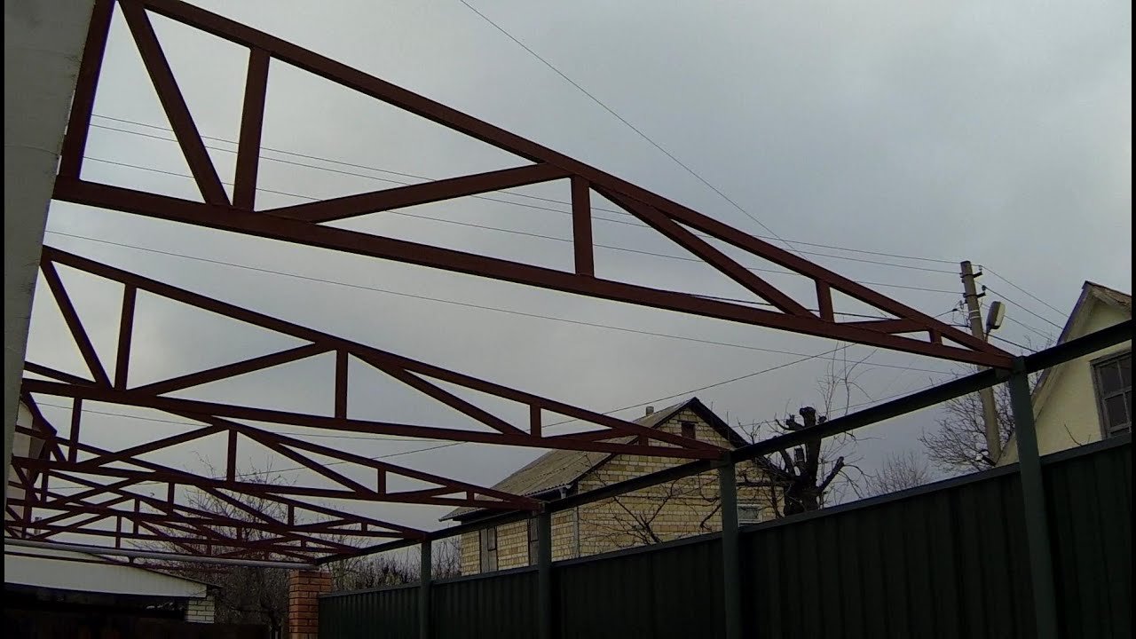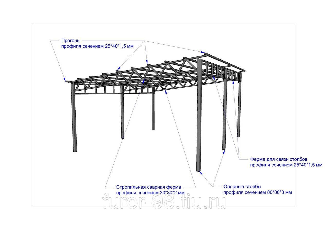 Двухскатный навес из профильной трубы чертежи