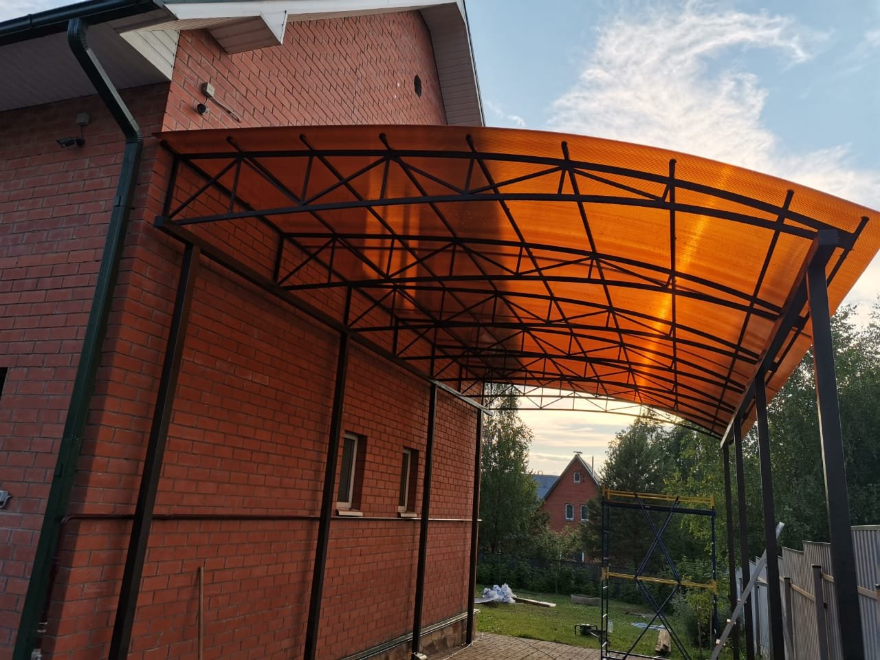Навес из поликарбоната по метал фермам 3360х1350х3300