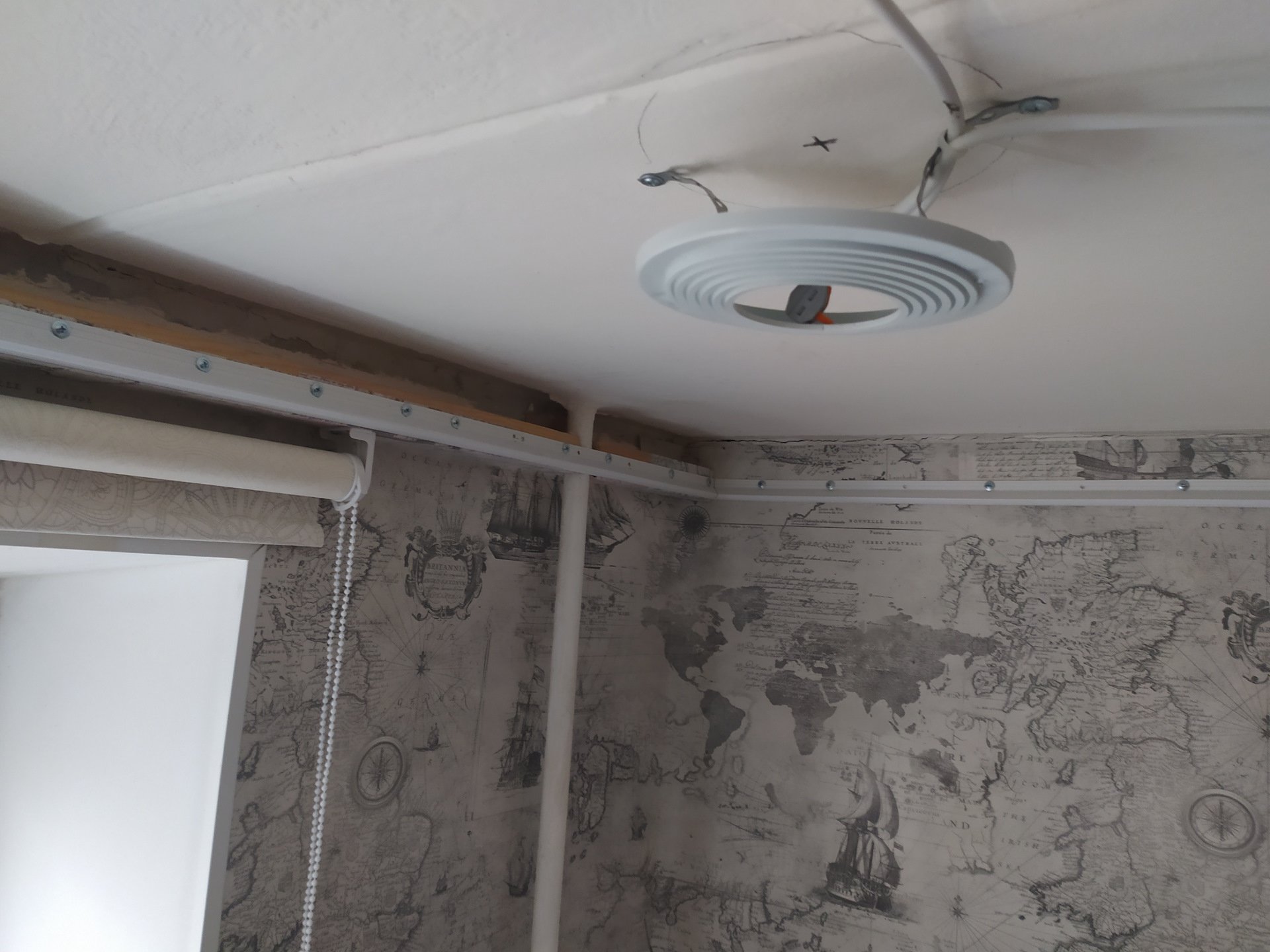 Потолочный плинтус и трубы отопления