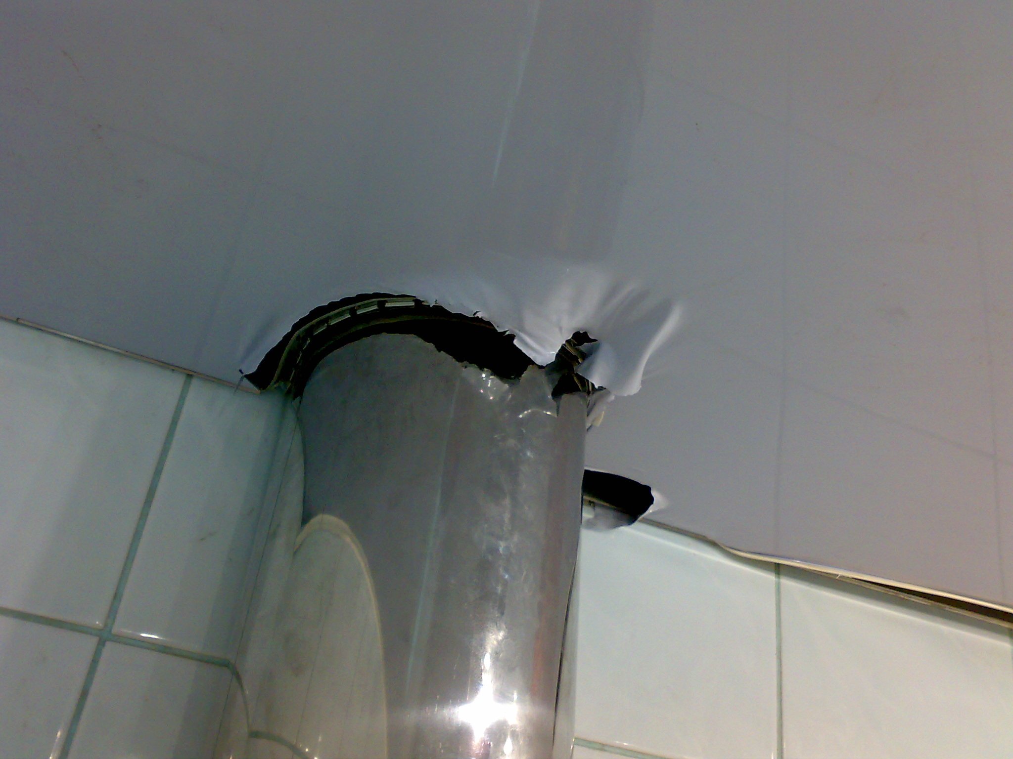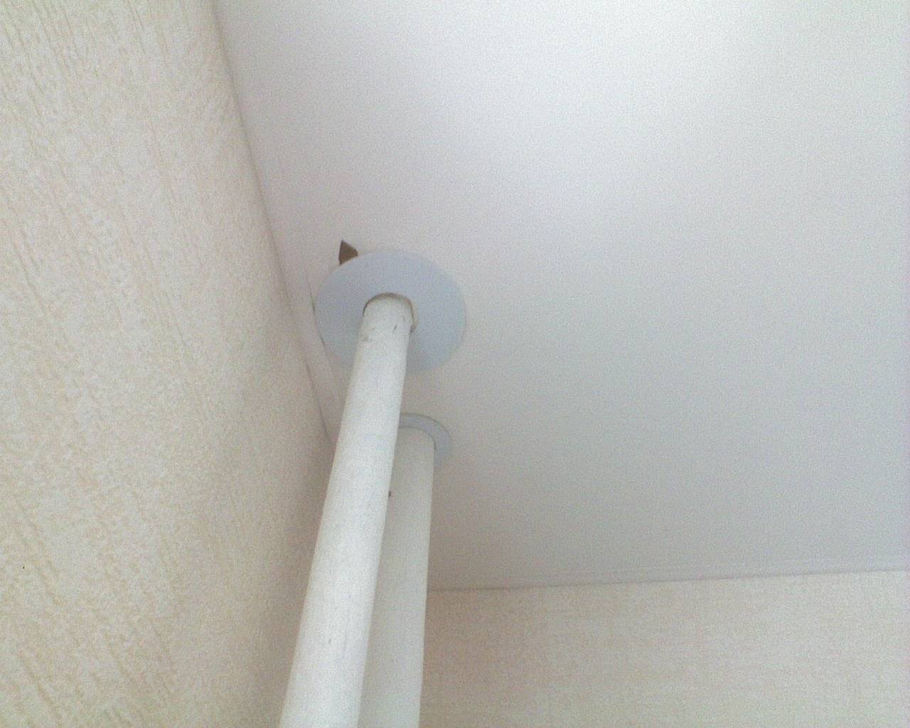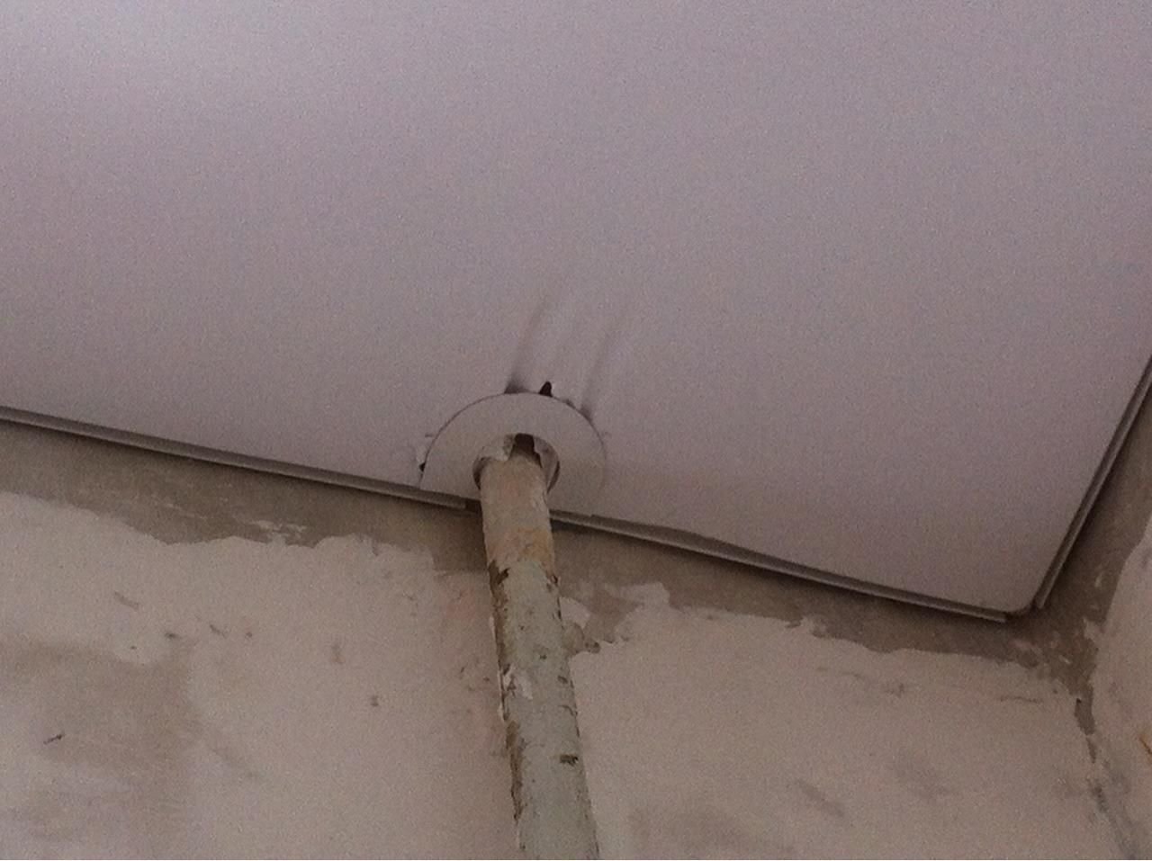 Труба от газовой колонки и натяжной потолок