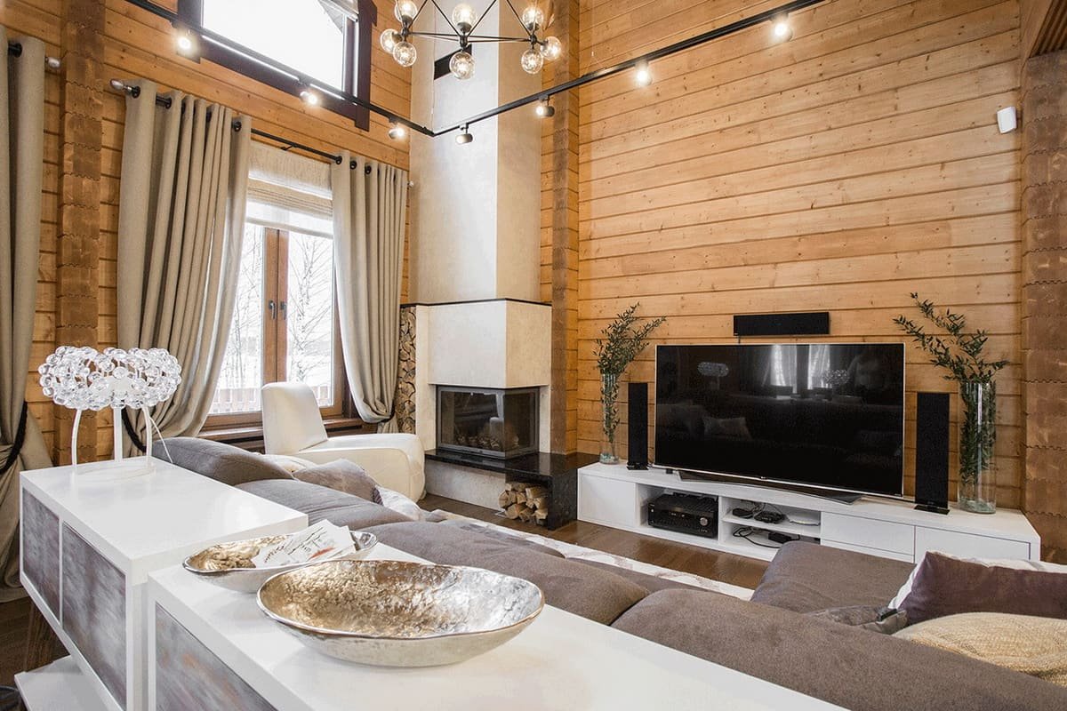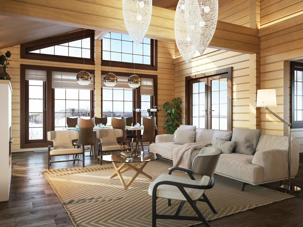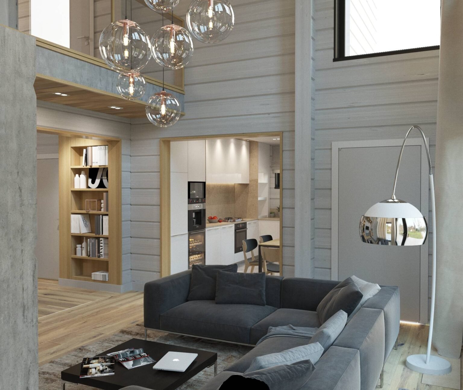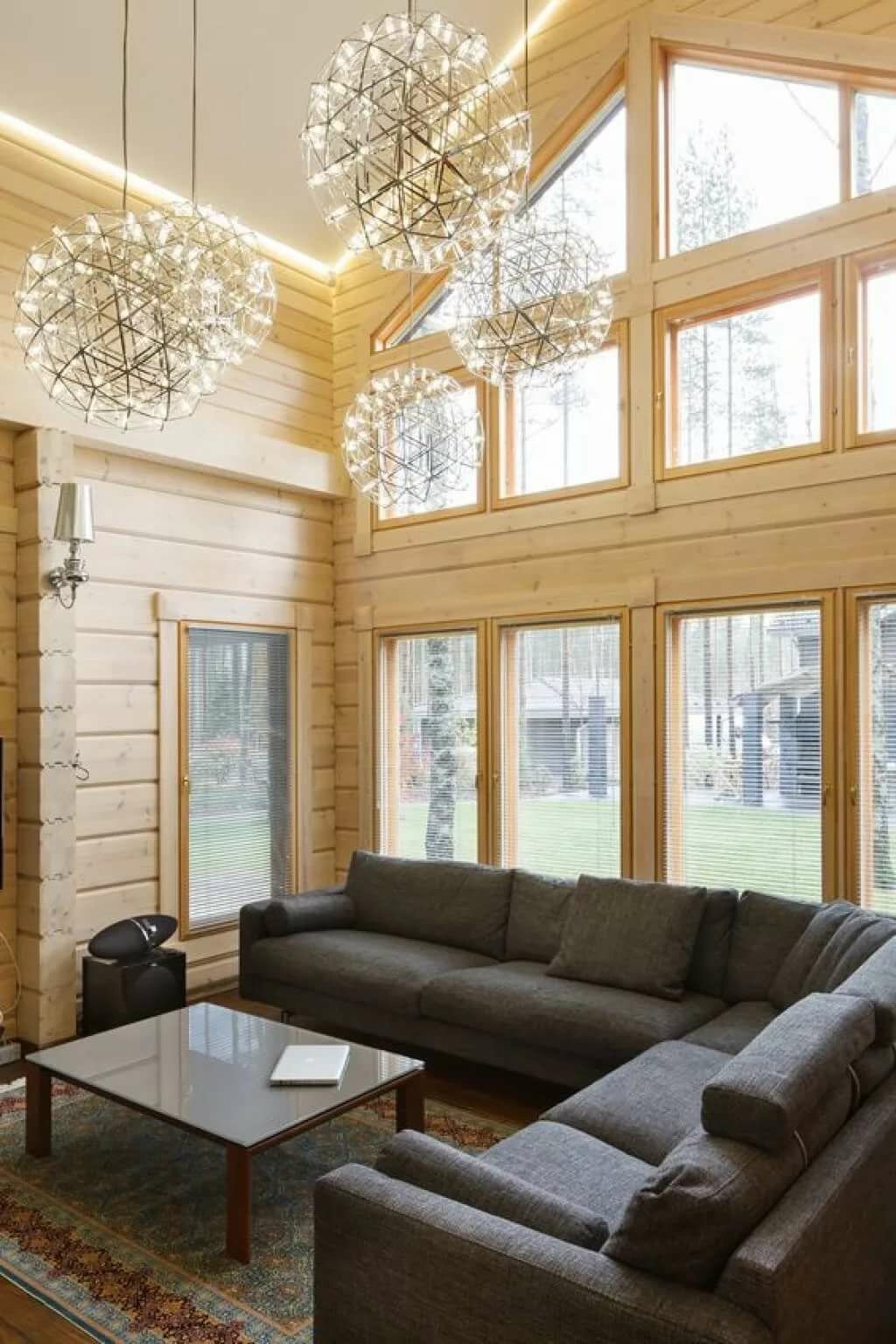 Интерьеры в домах из клееного бруса в скандинавском стиле