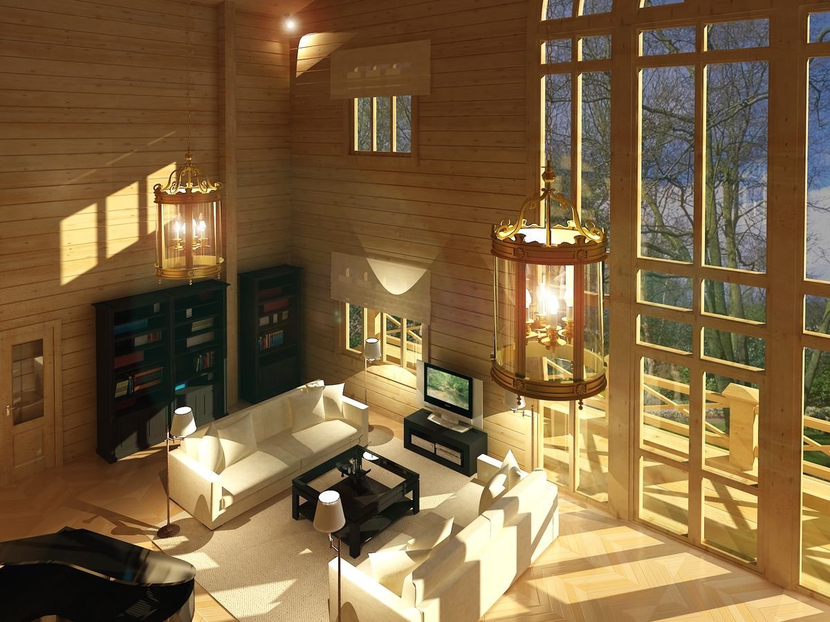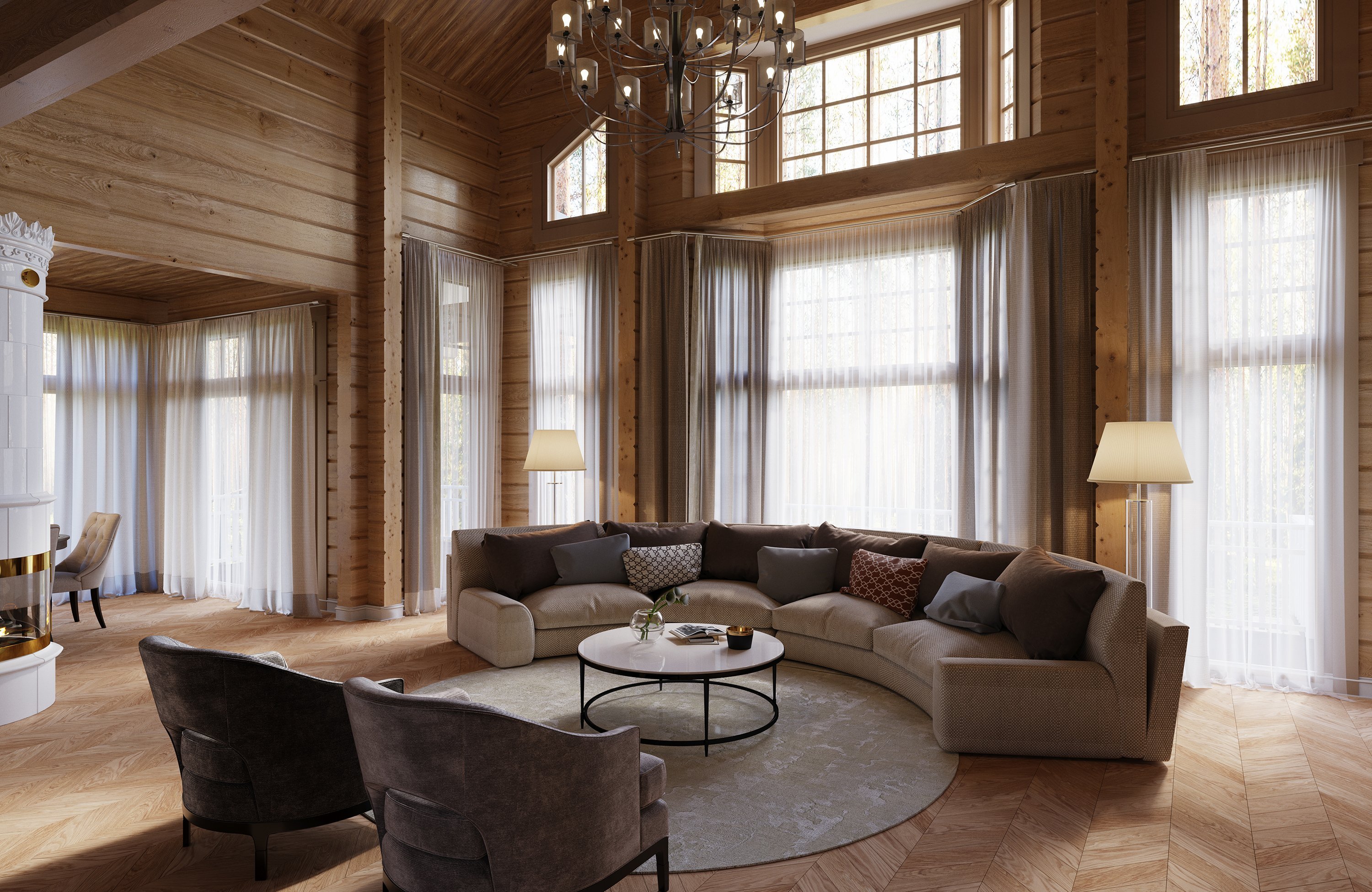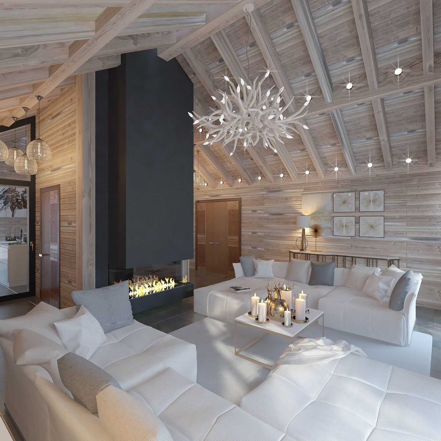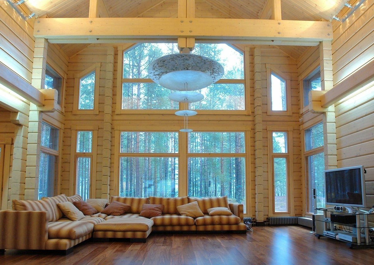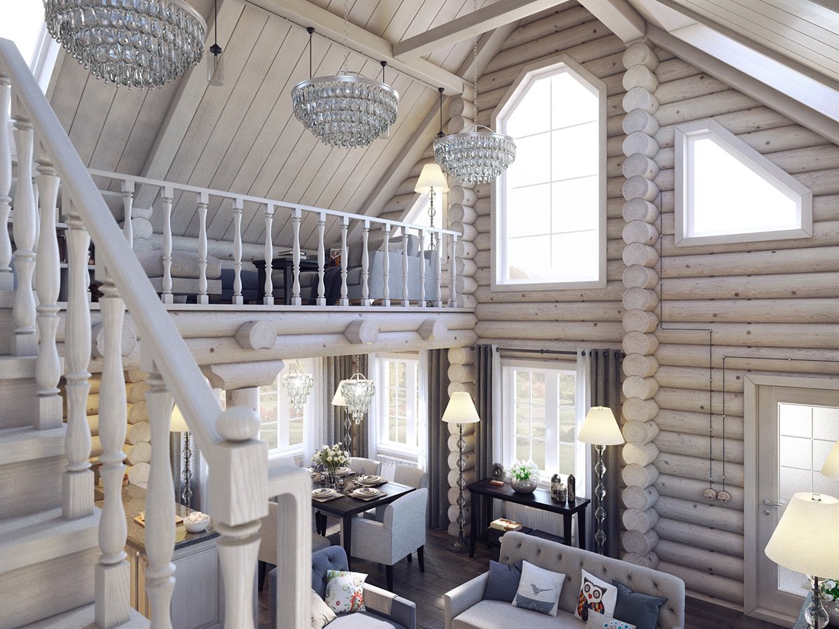 Интерьеры в домах из клееного бруса в скандинавском стиле