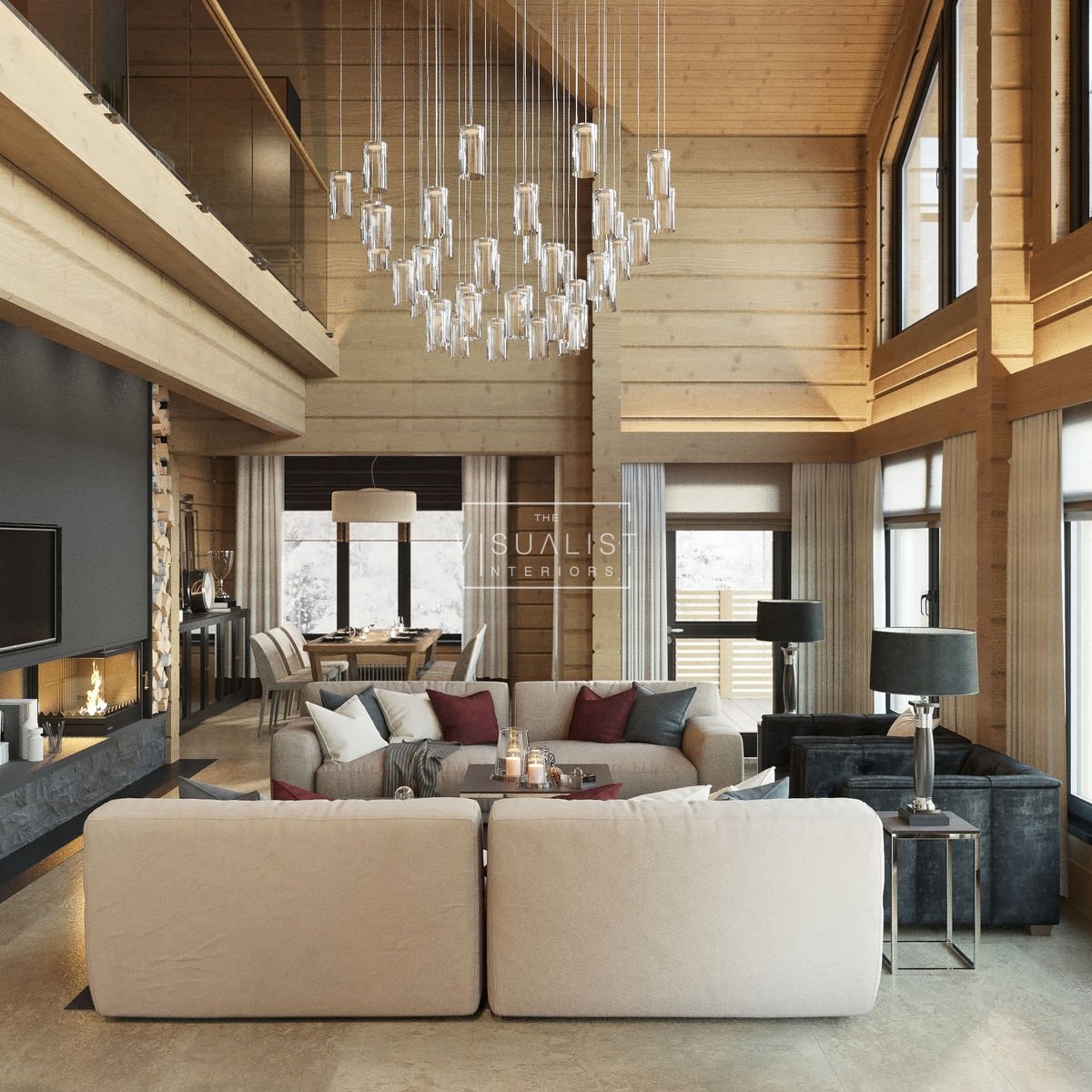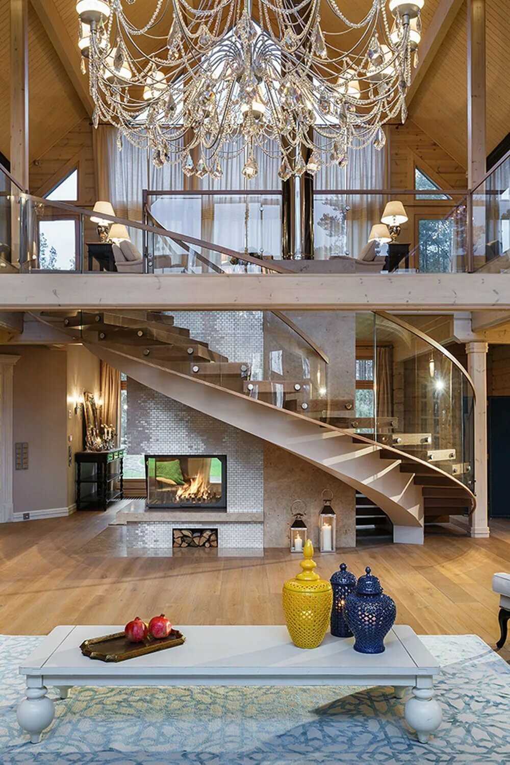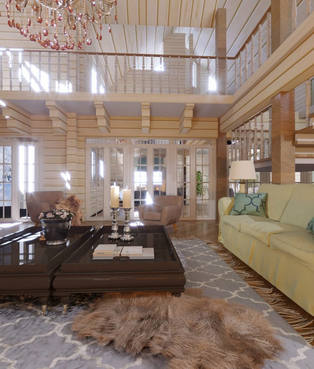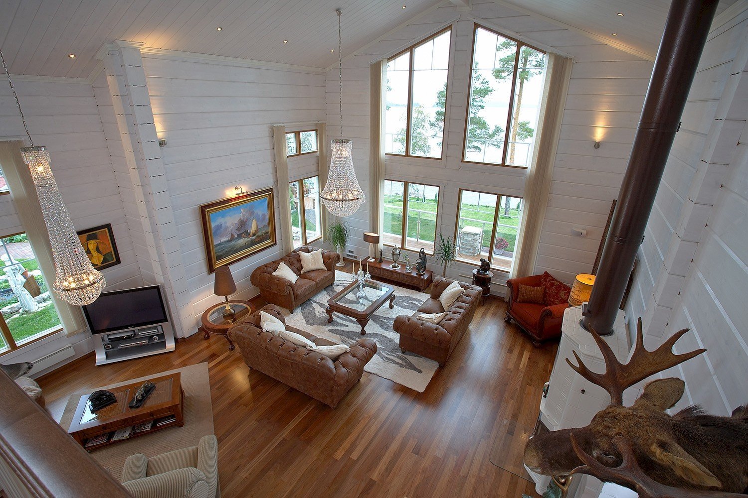 Интерьеры в домах из клееного бруса в скандинавском стиле