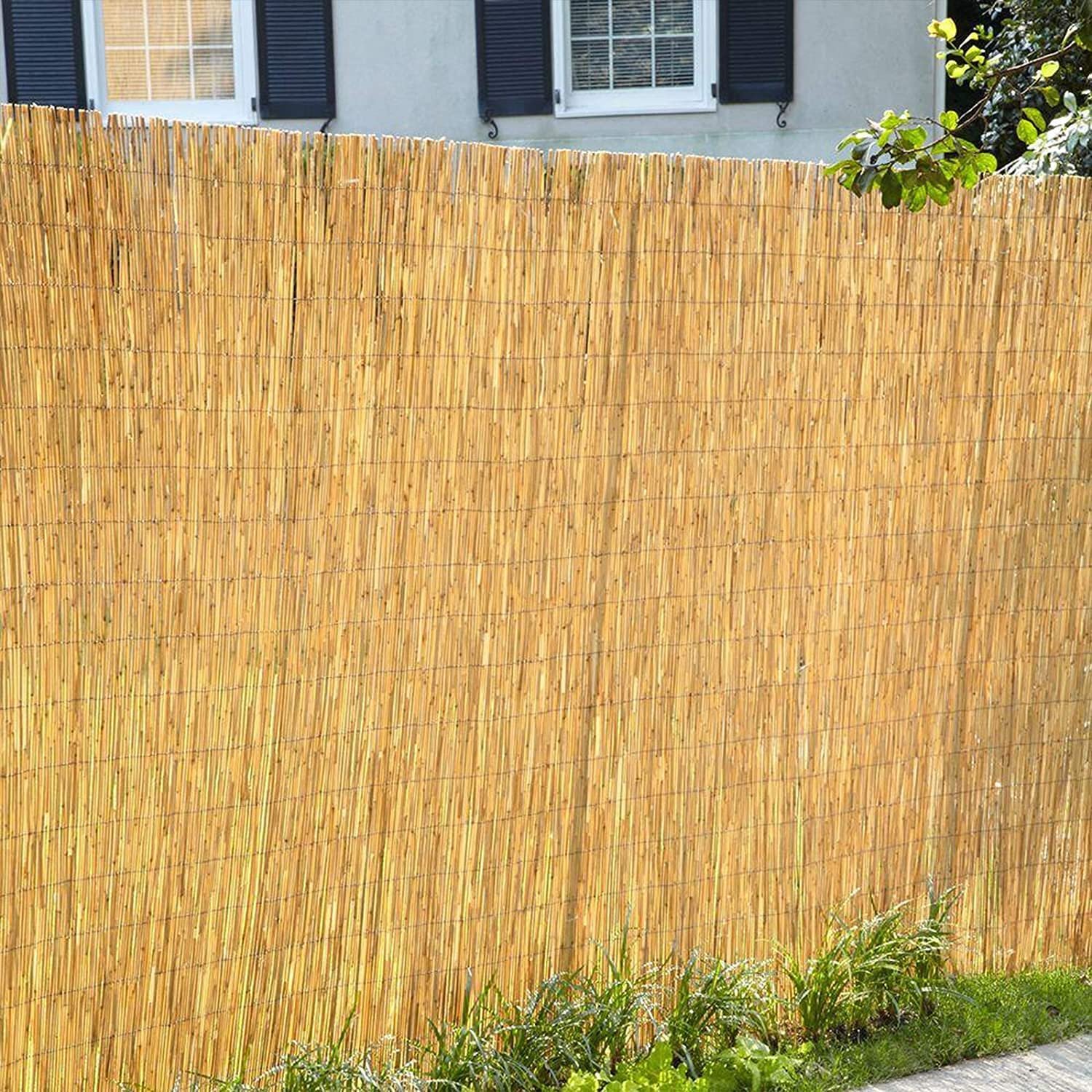 Закрыть забор бамбуковой изгородью