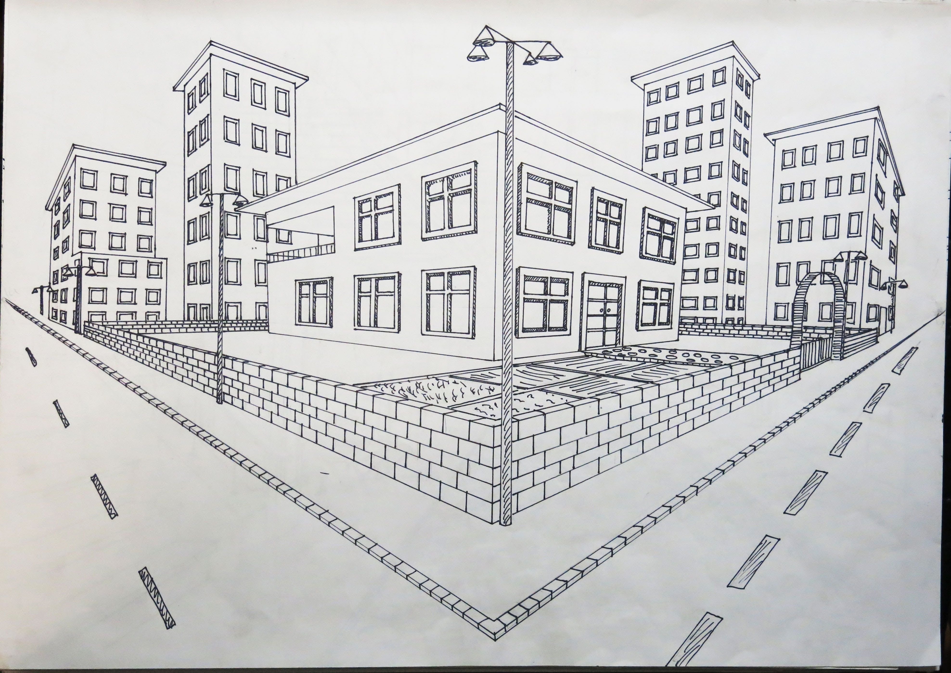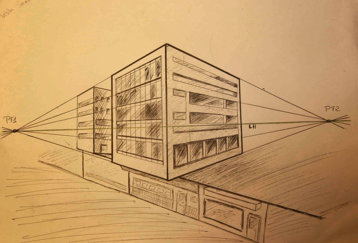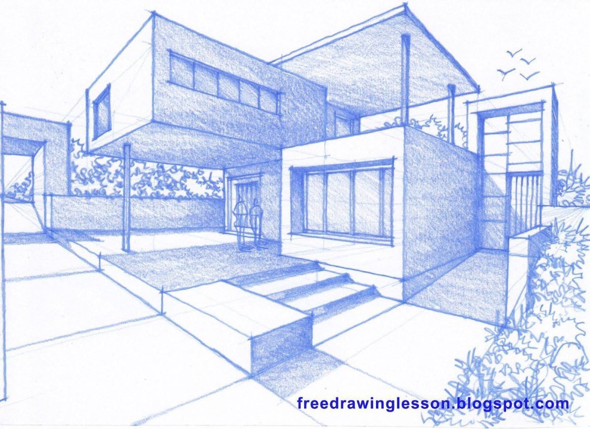 Рисование экстерьера здания в перспективе