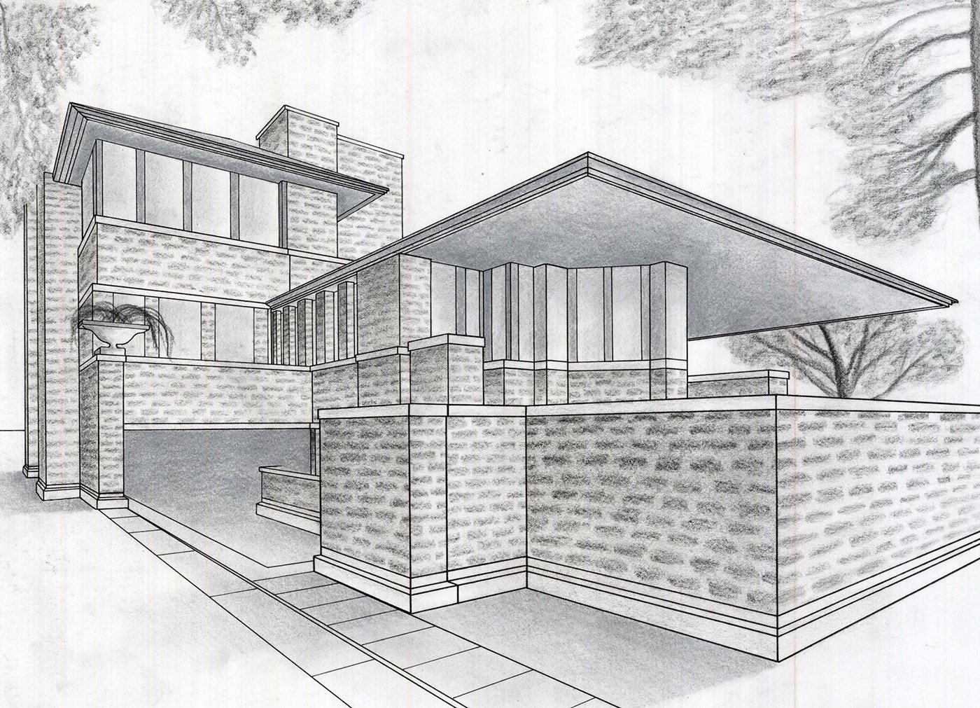 Модульная архитектура рисунок карандашом