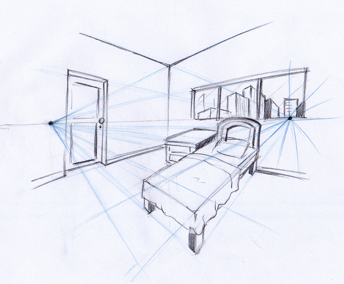 Двухточечная перспектива в рисунке