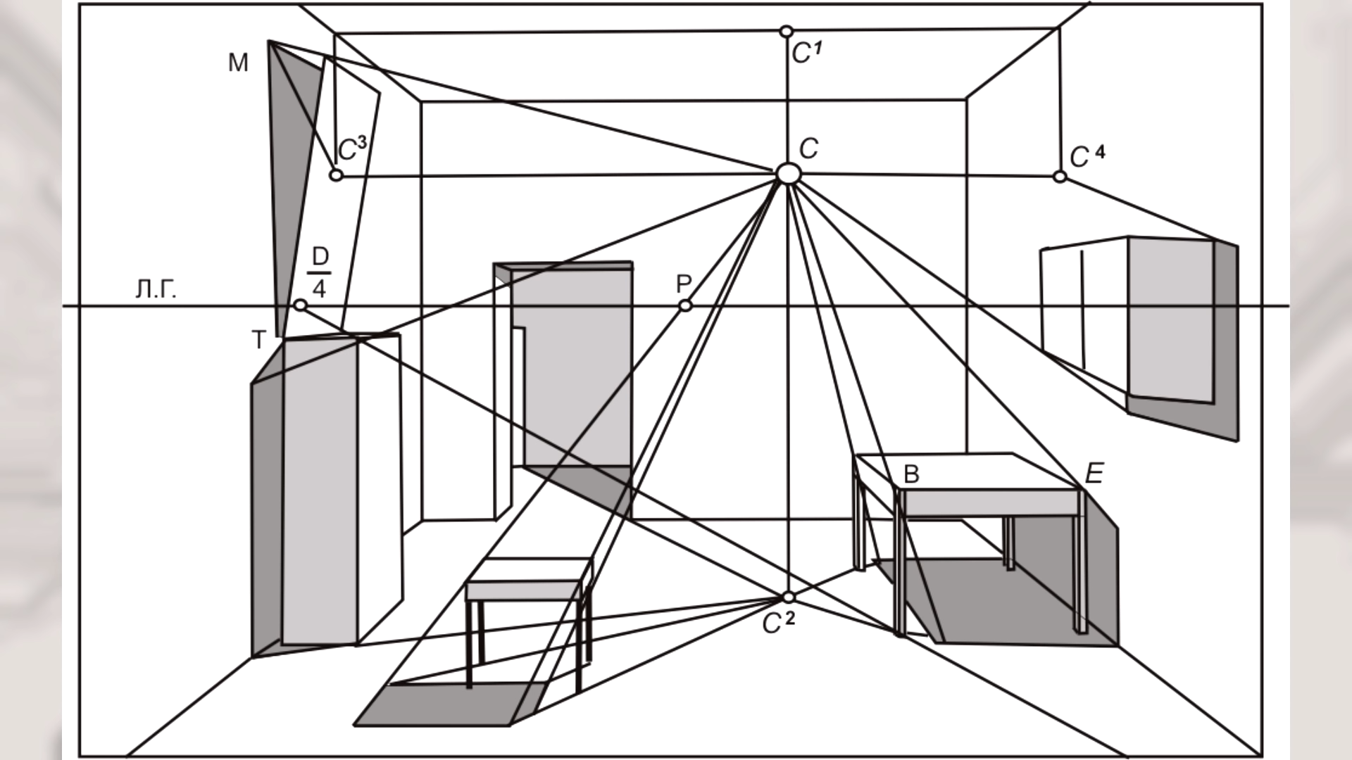 Перспектива интерьера Начертательная геометрия