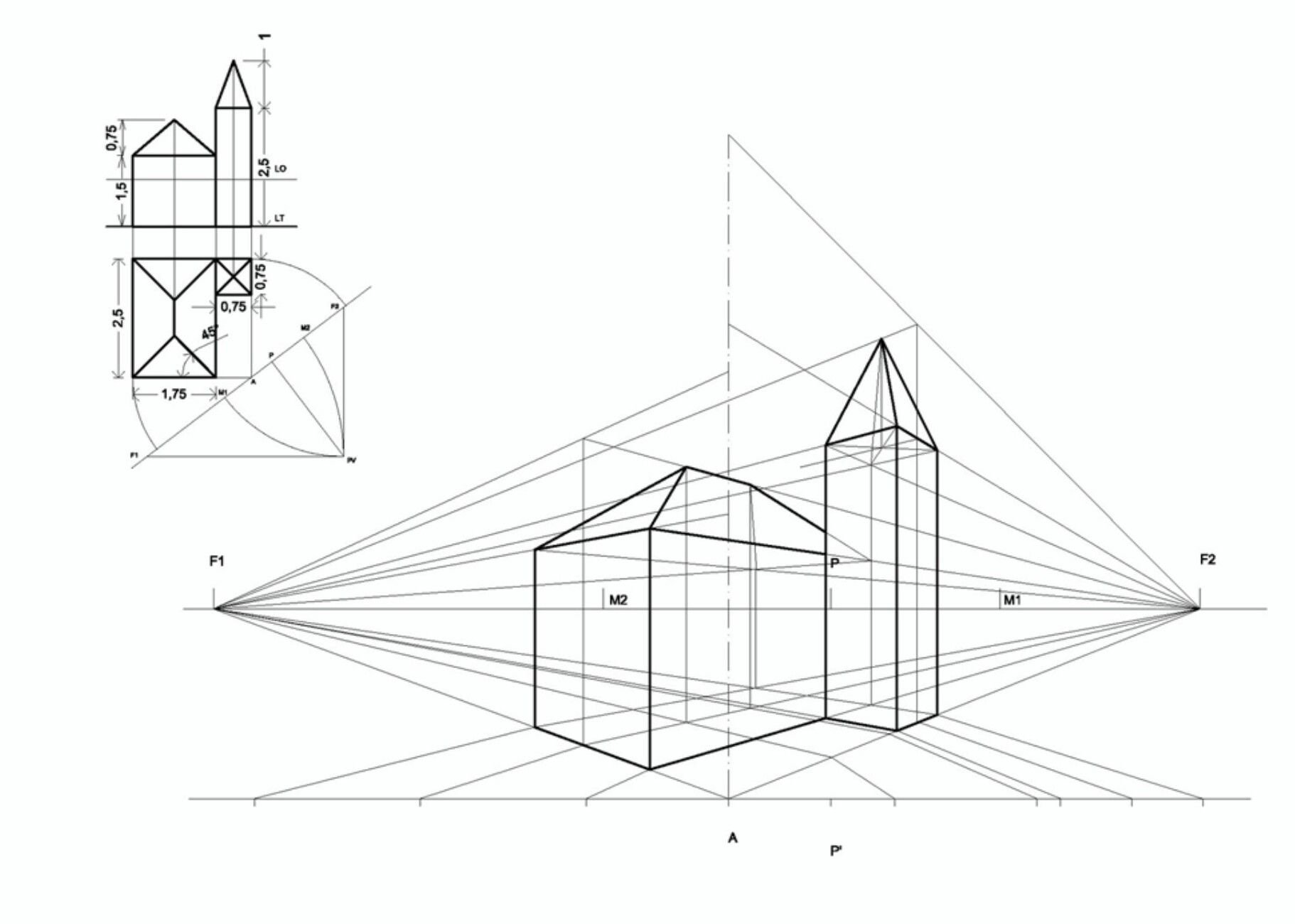 Дом в перспективе с 2 точками схода