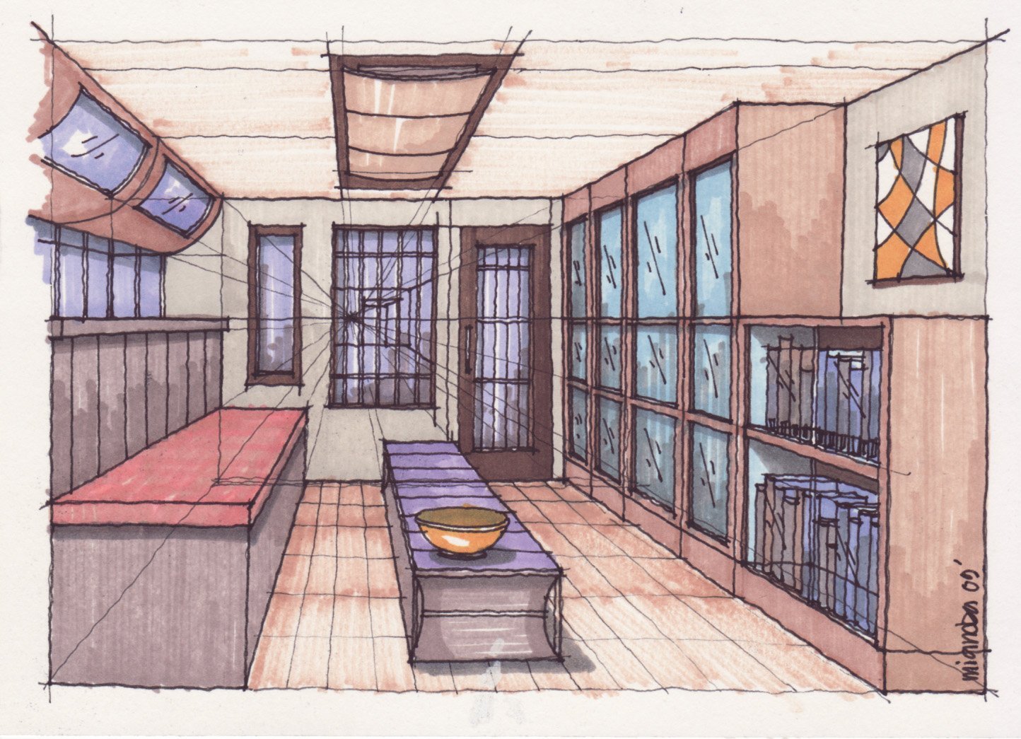 Перспектива фронтальная скейч интерьер