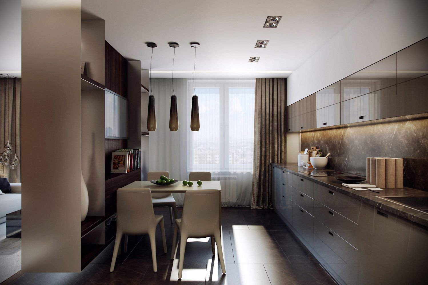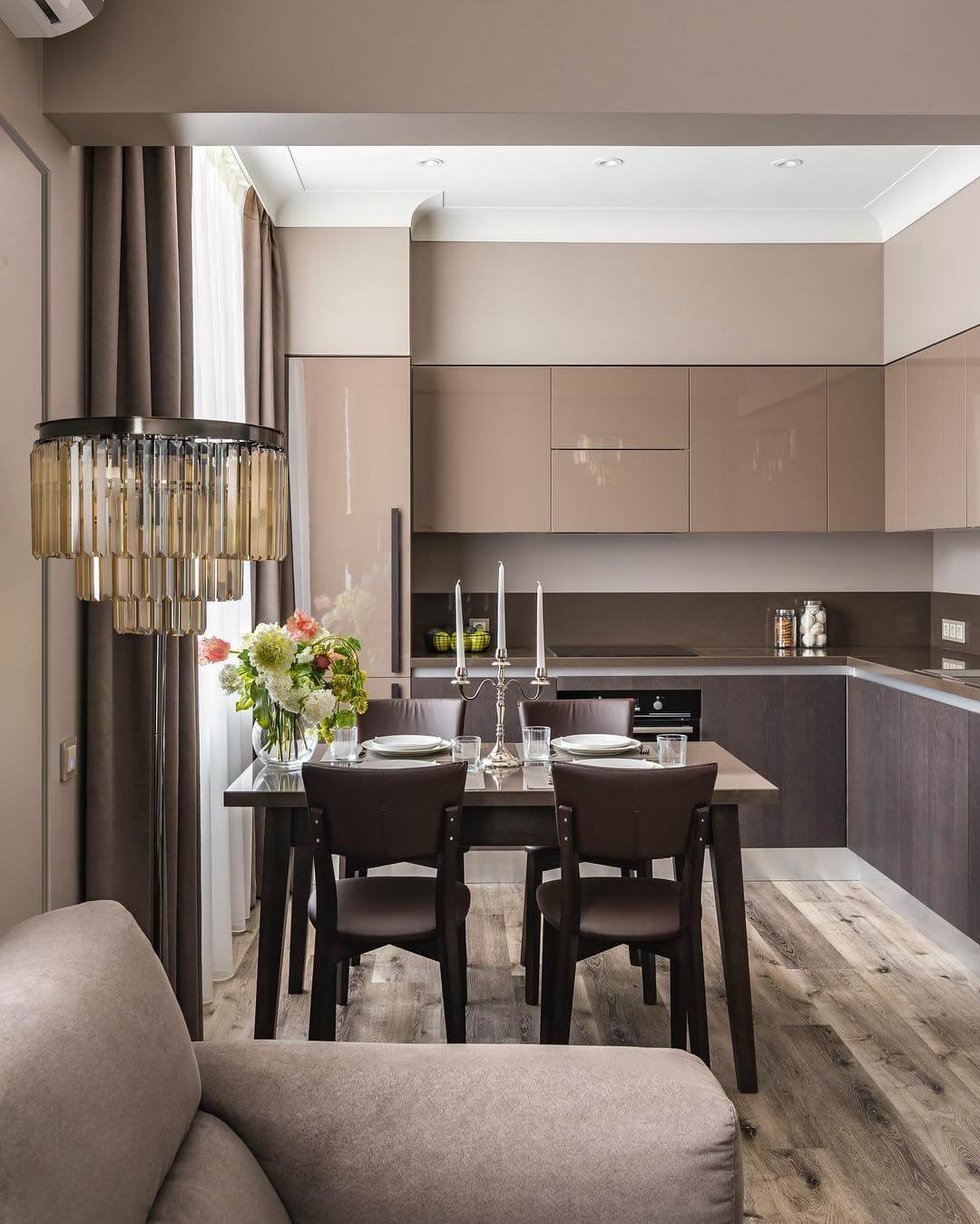 Темно бежевая кухня гостиная