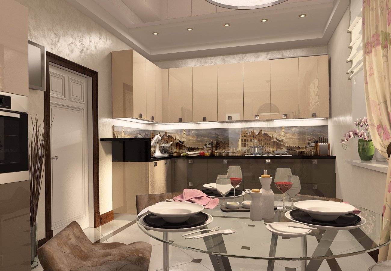 Кухни в бежевинтерьер современный стиль