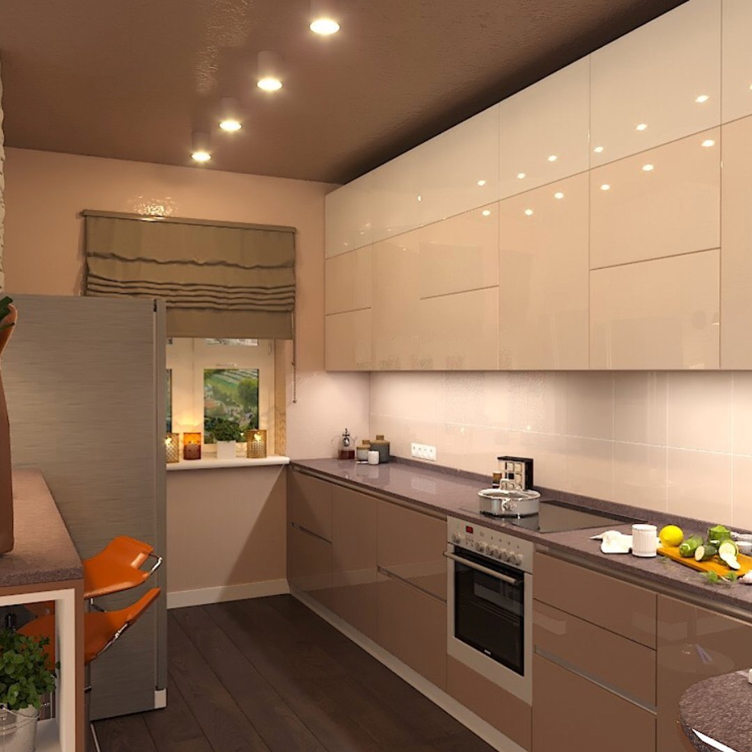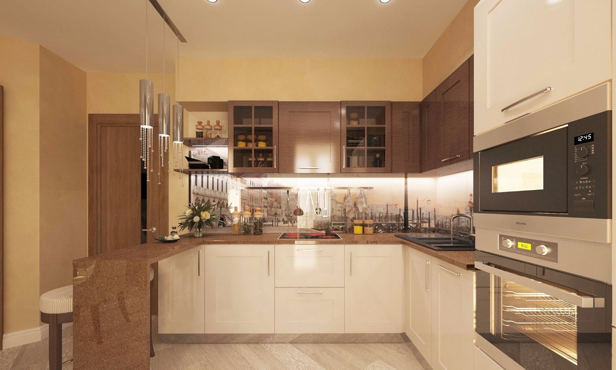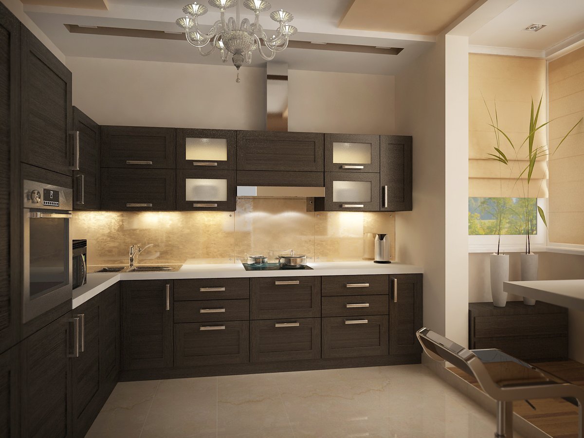 Дизайн кухни светло коричневые тона
