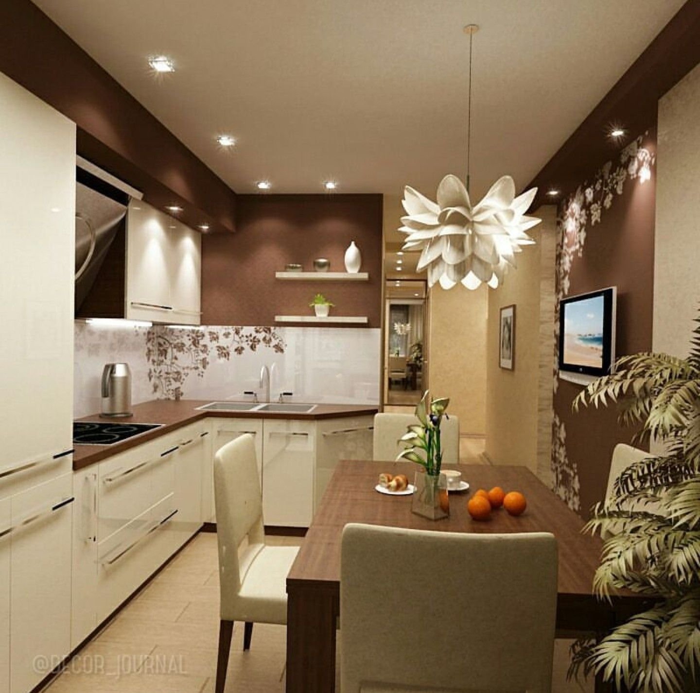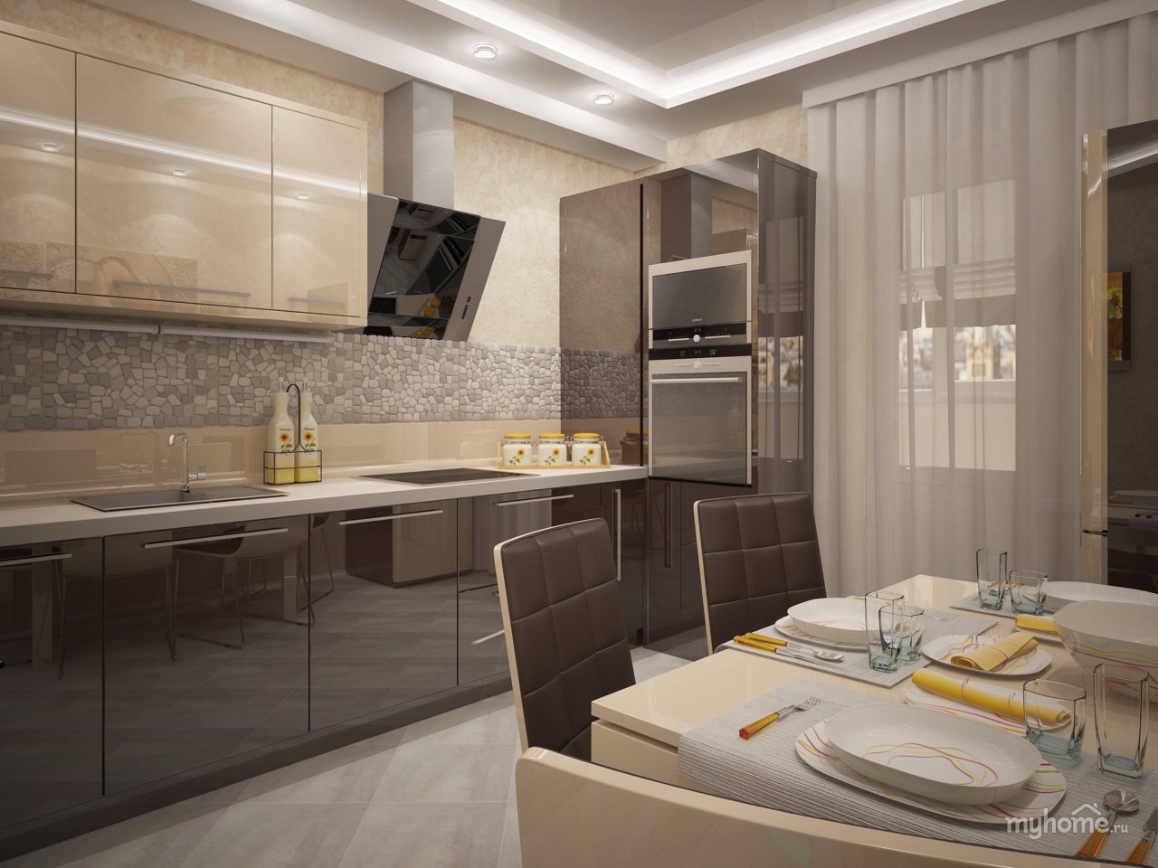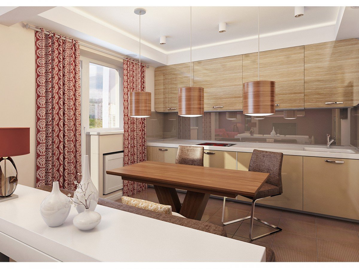 Дизайн кухни светло коричневые тона
