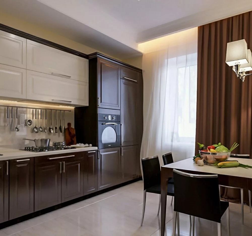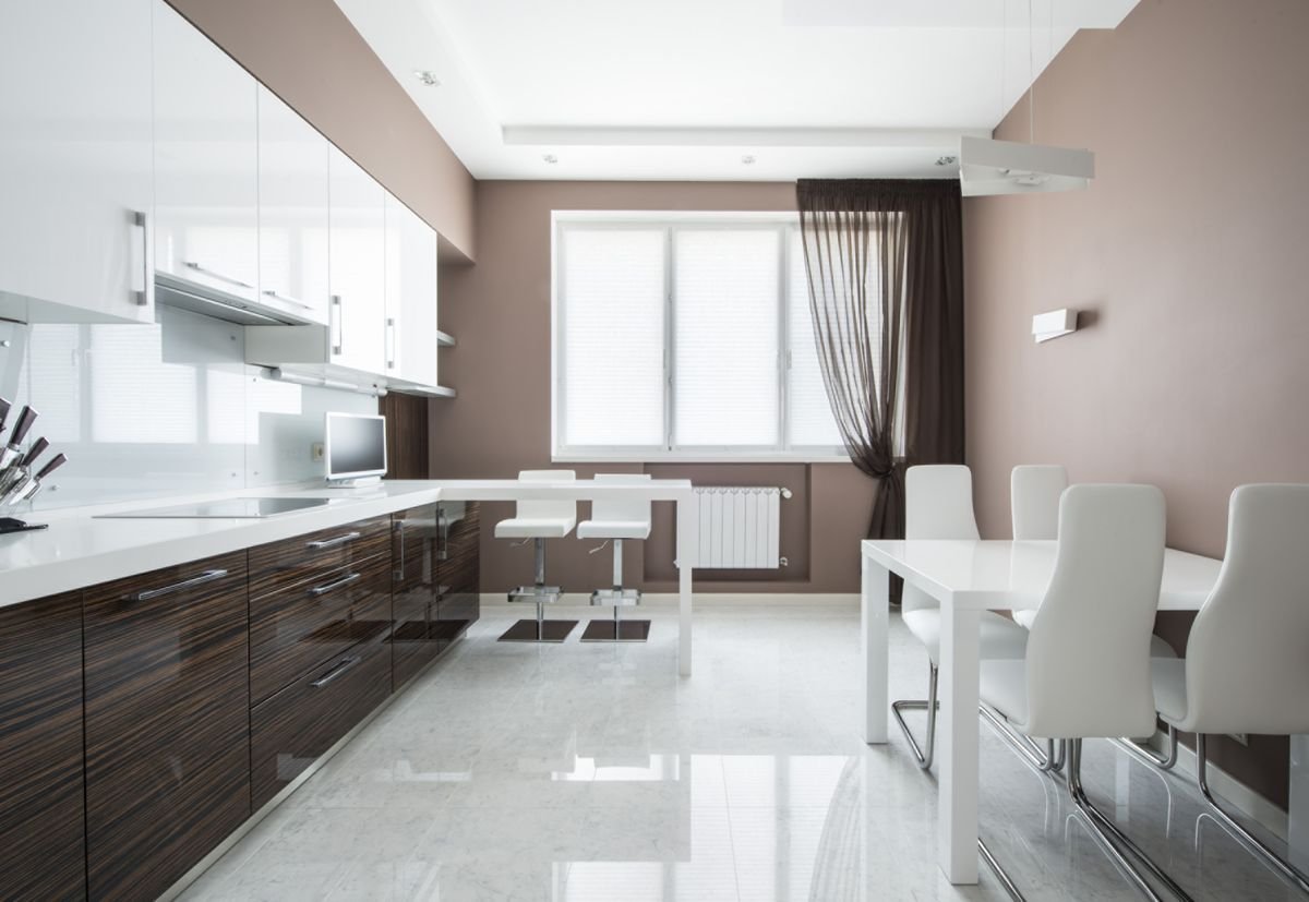 Бело коричневая кухня в интерьере