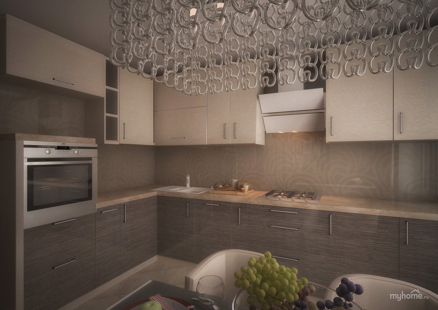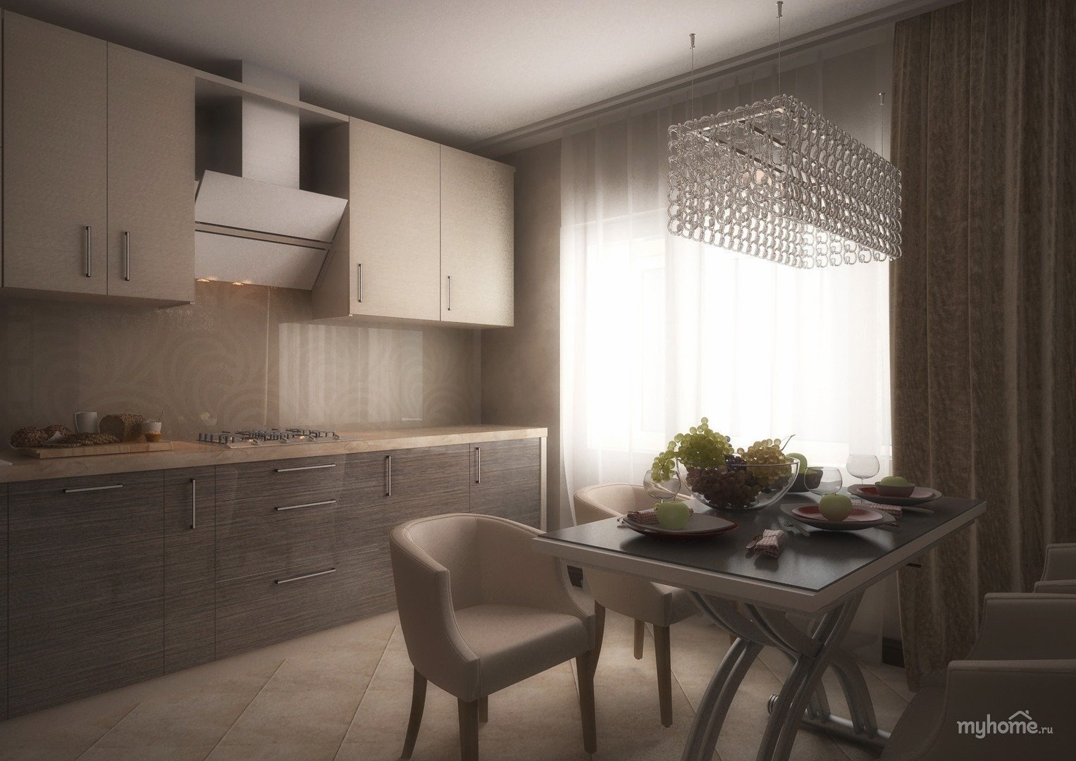Бежевый и серый в интерьере кухни
